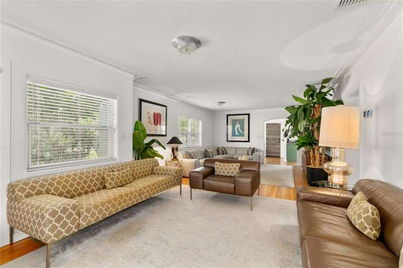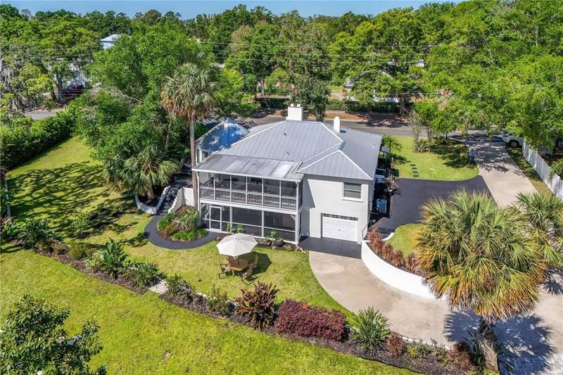With just a peaceful and breezy 5-minute walk to Historical District Downtown Mount Dora - with its renowned restaurants, boutique shops, and lakeside charm. We welcome you to this stunning 4-bedroom, 2-bathroom home offering 2,796 sq. ft. of beautifully updated living space. Originally built in 1947, this home effortlessly blends classic character with modern upgrades. Completely updated in 2014 with a new electrical and plumbing system, and topped with a brand-new roof in 2019, this property offers peace of mind and lasting value. Energy-efficient hurricane impact windows and doors and spray foam insulation in the roof provide optimal comfort and energy savings year-round. As you arrive, you'll be captivated by the lush, professionally landscaped yard, showcasing a variety of mature trees and vibrant plantings, all meticulously maintained. Step inside to a warm, spacious living room that opens into a fully updated kitchen featuring a new Samsung gas range oven and Samsung fridge/freezer. Just beyond, a breathtaking formal dining room awaits, surrounded by windows and crowned with a stunning turret-style ceiling that echoes the home's historic charm. The main floor boasts two comfortable bedrooms and a beautifully remodeled full bathroom, along with a conveniently located washer and dryer. From all of the main floor bedrooms there is access to the large screened in terrace that gives a tranquil and calming view of luscious trees and garden. Downstairs, the home offers private, flexible living space with a separate entrance-ideal for guests, multigenerational living, or potential rental income. Here you'll find two additional bedroom, another fully renovated bathroom, and a second full kitchen with eat-in space, that opens up to your SECOND screened in terrace perfect for morning coffee - and a second washer and dryer set up in the garage right off the downstairs living area. Entertainment lovers will be drawn to the custom-designed cinema room, outfitted with a Sony OLED TV, Dolby ATMOS 7-speaker surround sound system, soundproofing, and acoustic panels-plus luxurious seating including an. Italian six-seater leather sofa, beanbags, and cinema-themed d?cor. Additional upgrades include fresh paint throughout, a new fence, and a state-of-the-art alarm system on all windows and doors, complete with glass-break sensors. With its prime location, historic charm, and modern amenities, this one-of-a-kind Mount Dora home offers unmatched character, comfort, and convenience. Downtown Tavares and Eustis nearby. 45 minutes away from Orlando International Airport and Walt Disney World theme parks. 15 minutes from the SR 429. Don't miss your opportunity to own a piece of paradise just steps from everything downtown has to offer.