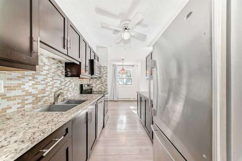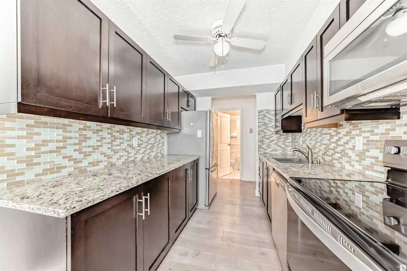 *NOTE* Adult Building +18, No dogs.. Cats are OK.Welcome to Adult building 18+ concrete building designed for comfort, convenience, and a vibrant lifestyle in the sought-after community of Haysboro. This move-in-ready 904 sq. ft. condo features two bedrooms and a beautifully updated interior. Durable laminate flooring runs throughout, while the kitchen is finished with newer maple cabinets, granite counters, and stainless steel appliances. The dining area flows into the spacious living room, where floor-to-ceiling sliding doors open to an impressive south-facing patio on the first floor—perfect for relaxing or entertaining. The large primary bedroom easily accommodates a king-size bed, and the second bedroom offers flexibility as a guest room or home office. A 4-piece bathroom with a luxurious jetted tub, plus a generous storage/laundry area with washer and dryer, complete this inviting home. Residents enjoy exceptional amenities, including a fitness room, library, and social room, along with the convenience of an on-site concierge (available 4 hours a day, 5 days a week). Condo fees include heat, electricity, water, and sewer—an excellent value for empty nesters, first-time buyers, or investors seeking comfort and accessibility. Located just steps from Southland Crossing, you’ll have easy access to shops, services, and restaurants. The Southland LRT is only a 7-minute walk away, while the Southland Leisure Centre and Southcentre Mall are just a 5-minute drive.