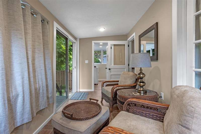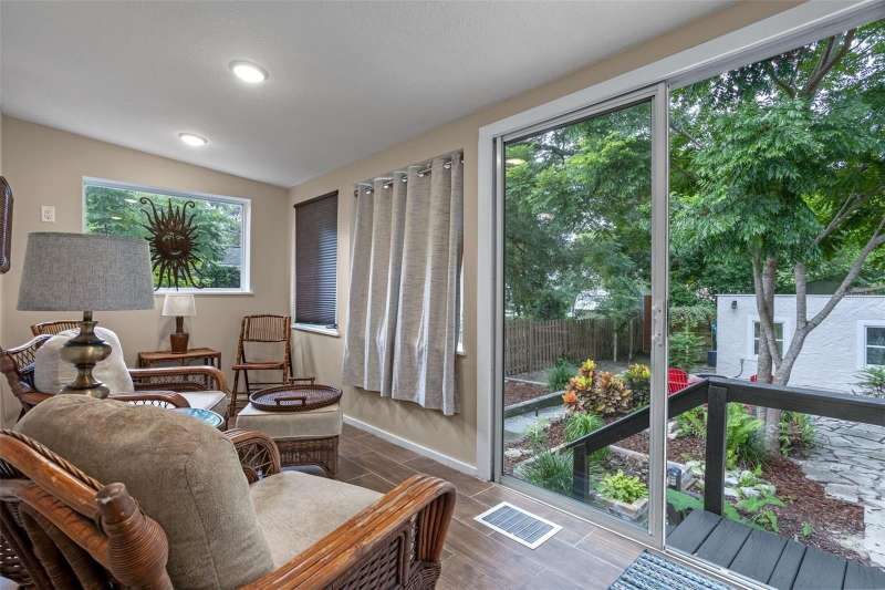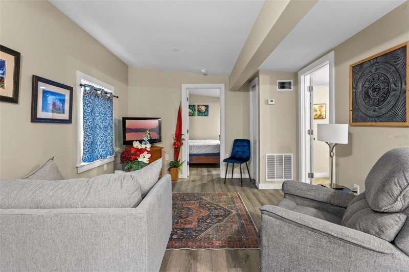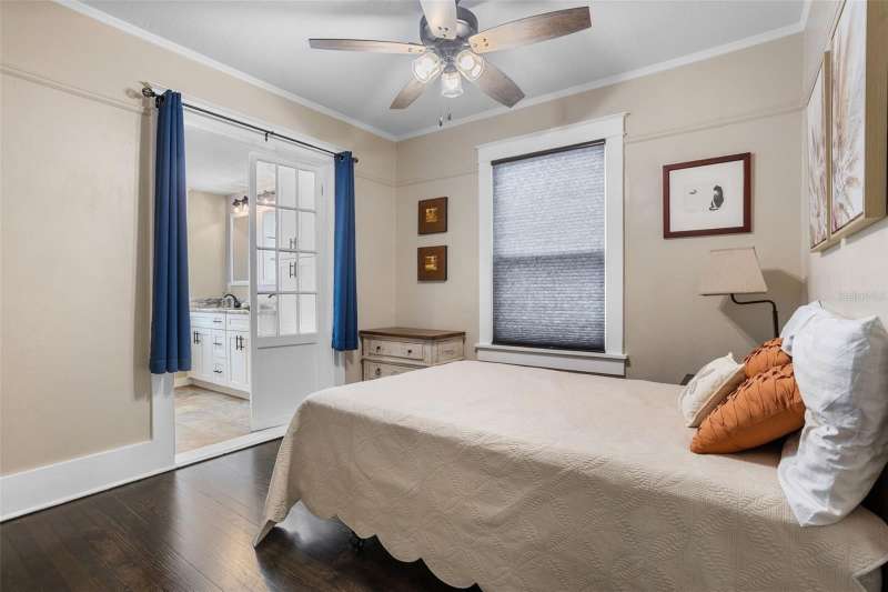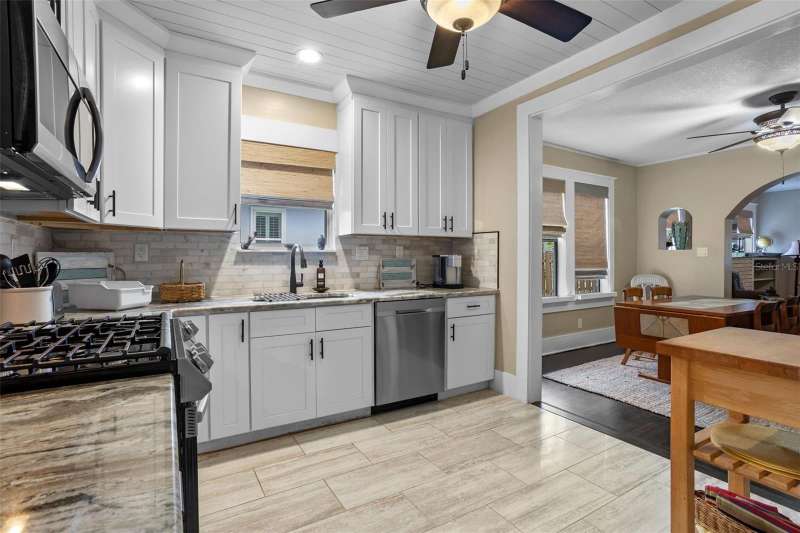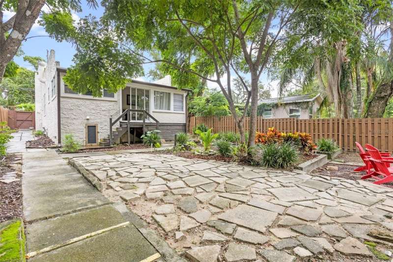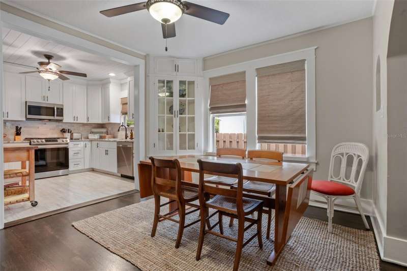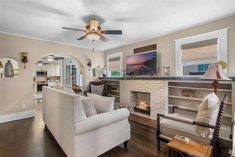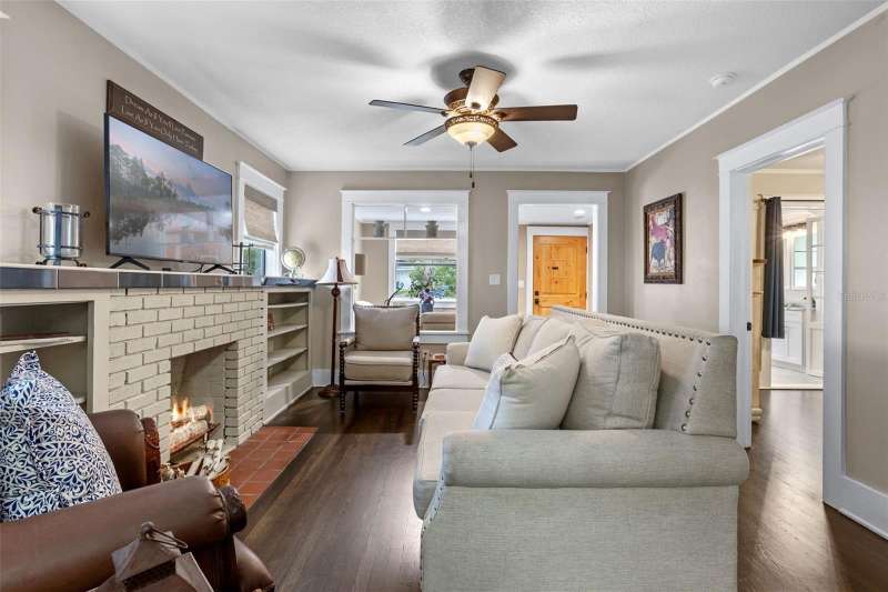Under contract-accepting backup offers. Just six blocks from the heart of downtown Mount Dora, this unique property offers not one, but two beautifully updated homes. The main residence is a charming 3-bedroom, 2-bath featuring a welcoming foyer, a spacious living room with a fireplace flanked by built-in bookshelves, and a remodeled primary suite with dual sinks and a walk-in shower. A formal dining room with built-in china cabinet leads to two additional bedrooms and a guest bath. The kitchen is tastefully finished with granite counters, stainless steel appliances, and modern fixtures, while a Florida room and laundry stretch across the back of the home overlooking the private yard. In 2022, the home received significant updates including new flooring, appliances, plumbing, electrical, and fixtures. The second home is a stylish 1-bedroom, 1-bath with an open floor plan, kitchenette, generous living space, and an oversized closet—perfect for extended family, guests, or rental income. Between the two homes, a newly added screened gazebo with ceiling fan and a fire pit create a tranquil outdoor retreat under a canopy of shade trees. Fully fenced for privacy, this downtown oasis is steps away from Mount Dora’s vibrant restaurants, boutique shops, and year-round festivals, making it an ideal opportunity to enjoy the very best of this beloved lakeside community.