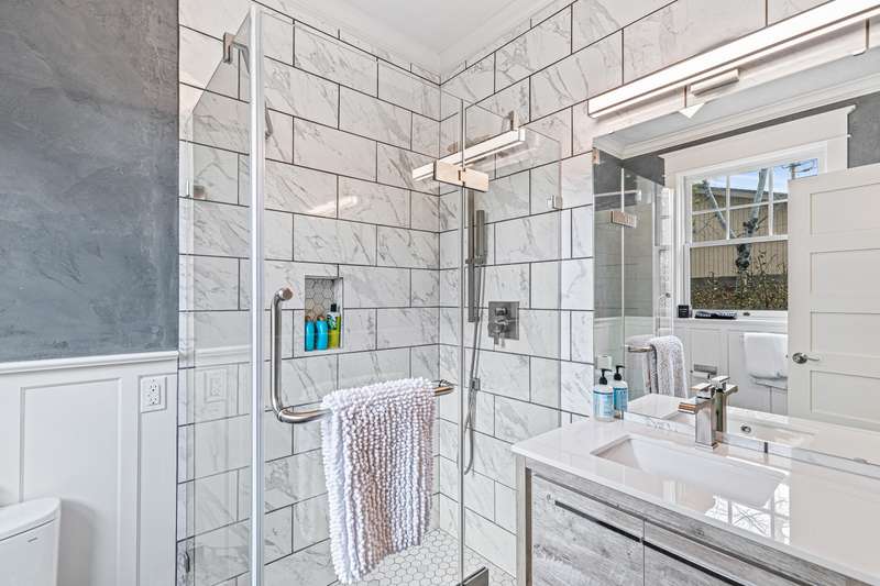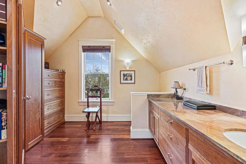 This charming and modernized Victorian has it all! Very close to Ashland's downtown, the home is a stunning showcase that has been extensively renovated & updated. The ground floor has 2 ensuite bdrms, an office, and a private guest suite with a full bathroom & sitting room. The light-filled living room has a gas fireplace with access to multiple outdoor decks. A chef's kitchen flaunts a 48'' gas range & plenty of room to entertain. Upstairs the primary suite has a large bedroom w/a sitting area, gas fireplace and access to a rooftop deck. The dble-size bathroom has 2 toilets, a shower & soaking tub. A cozy nook provides a reading space or 2nd office. Numerous built-in closets in all rooms. Designer lighting & Brazilian hardwood floors throughout. the finished daylight basement provides a great flex space or plenty of storage. The .31-acre lot is freshly landscaped w/a water feature, gas fire pit, jacuzzi, stone garden beds & a fenced backyard. The 2-car garage has a Tesla charger.