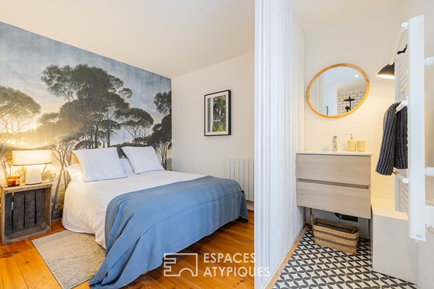 Upstairs, two bedrooms each with their own bathroom, including a comfortable 15 m2 bedroom with a soothing view of the marshes. On the landing, a closet integrates into the space and provides functional storage for linens.