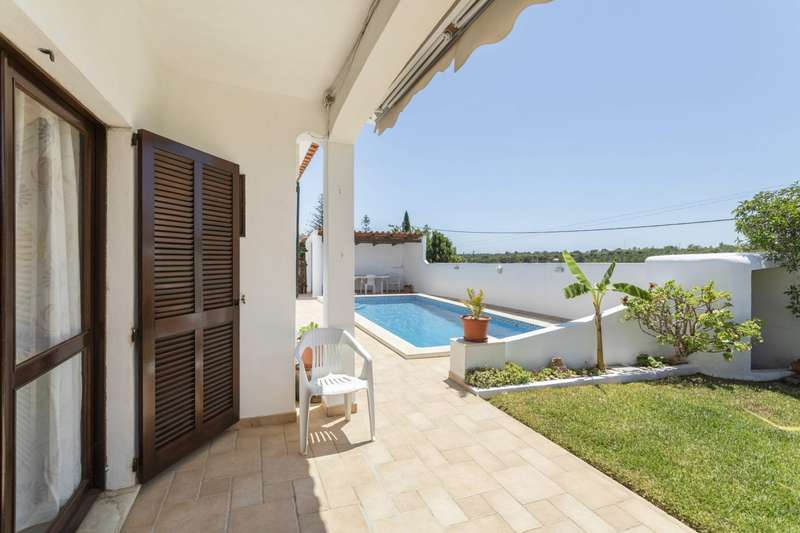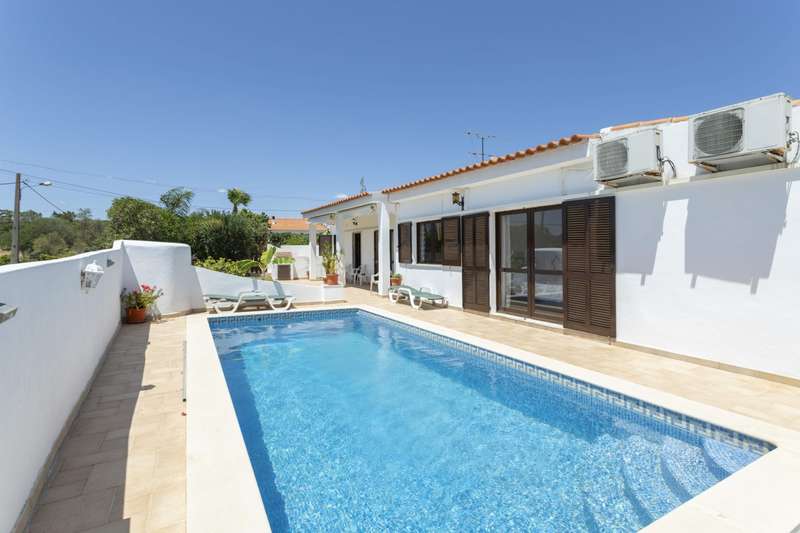Three bedroom villa with pool, for sale, near Almancil, Algarve. This villa is located in the countryside, has a large terrace next to the swimming pool to spend time enjoying the beautiful outdoors. An Ideal property for those seeking the tranquility of fantastic rural scenery without being isolated. Located a few minutes from the Laranjal Golf course and Quinta do Lago with many options for dining out and shopping nearby. Close to several beaches and 20 minutes from the historic city of Faro and Faro International Airport. . CHARACTERISTICS: Plot Area: 612 m2 | 6 588 sq ft Area: 162 m2 | 1 744 sq ft Useful area: 130 m2 | 1 399 sq ft Deployment Area: 162 m2 | 1 744 sq ft Bedrooms: 3 Bathrooms: 2 Garage: 1 Energy efficiency: D FEATURES: Swimming pool Terrace Garden Air conditioning