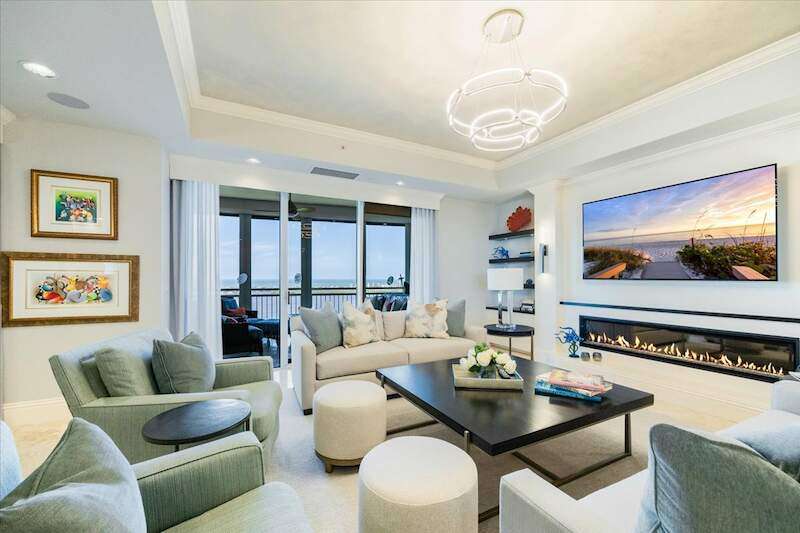 BACK ON THE MARKET AND NOW OFFERED AT THE BEST PRICE - Unit 2203 at Tavira, Bonita Bay is a stunning 22nd-floor sky home that captures the essence of luxury living in paradise. This rare opportunity combines breathtaking views, timeless elegance, and an unmatched value, making it one of the most distinguished residences available in Bonita Bay Enjoy Unforgettable sunset panoramas views from the screened lanai facing the Gulf The gourmet kitchen is equipped with a Wolf gas cooktop, electric oven, Sub-Zero refrigerator, and high-end granite countertops. The spacious layout includes separate living and family rooms, an enclosed terrace with views of Estero Bay, and dual custom closets in the master suite. Tavira offers exceptional amenities, including a full-time resident manager, social and card room, theater, fitness center, and a pool and spa. With two guest suites for visitors, this residence combines elegance and comfort in a beautiful setting.