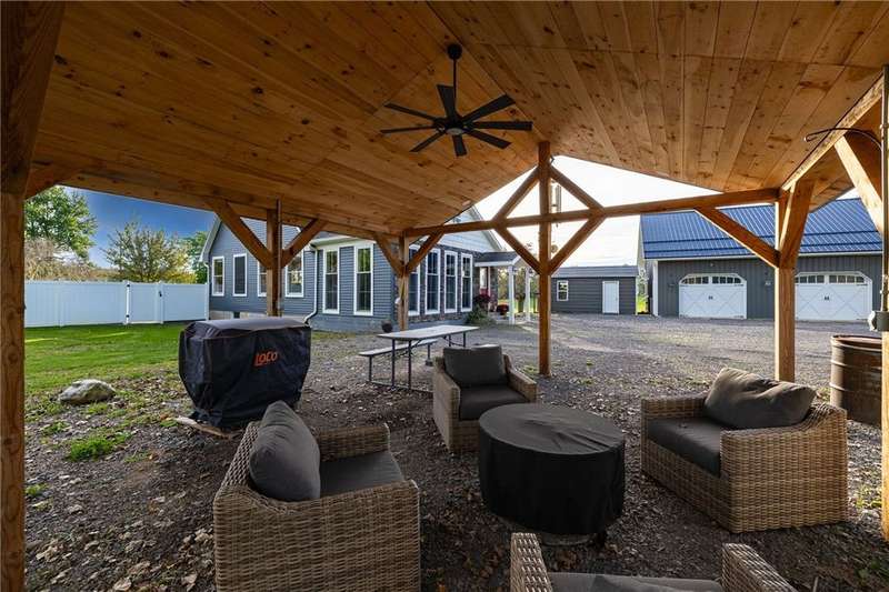 ***OPEN HOUSE SUNDAY 1-3***Over 11 Acres of open fields and pastures surround this Wonderful Property with a newer built 3-bedroom craftsman chalet style home and several outbuildings including an insulated and heated 2 story - 4 car Workshop! WIDE OPEN FLOOR PLAN! Huge Great Room with soaring tongue and groove ceilings with balcony above Open turned staircase leading to the 2nd floor! The kitchen has an abundance of cabinets and countertops! Stainless Appliances & Tile floors! Spacious Eating area! Large windows! Balcony Above! Door leading to fenced in rear yard and patio area! Family room with vaulted ceilings and floor to ceiling windows! High shelf area to display all your treasures! Amazing Full bath with jacuzzi tub and separate shower. 1st floor laundry! There is an open stairwell leading to the fully finished walkout lower level with recreation / game room, newer powder room, additional bedroom - could easily be converted to an in-law apartment! In wall " Mini Split " AC units! Run in shed / out bldg. opens to the fenced pasture area! The Garage Workshop has a 200-amp service, in floor heating, high insulated side walls, large overhead doors and stairs to the 2nd floor storage area! Great for in home business or to store all your toys! The rear field has great soils and ready to plant! There is a 3rd building with open sides! GREAT FOR HORSES & Goats and 4 wheelers! Large Gazebo for all your Parties! SF was measured and includes the finished lower level with egress. NORTH ROSE WOLCOTT SCHOOLS! Delayed negotiation - please submit all offers by TUESDAY OCTOBER 7th at 4pm