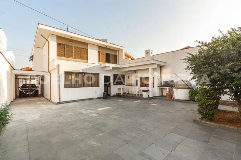 Excelente casa com dois pisos. No piso inferior, extenso jardim com área gourmet, churrasqueira e forno de pizza, amplo living, sala de jantar, sala de almoço, lavabo, cozinha e área de serviço. No piso superior, 4 dormitórios, sendo um suíte, além de um banheiro adicional. Há vagas para até 10 veículos. Localizada em uma rua tranquila, com abundante comércio, serviços e transportes nas proximidades.