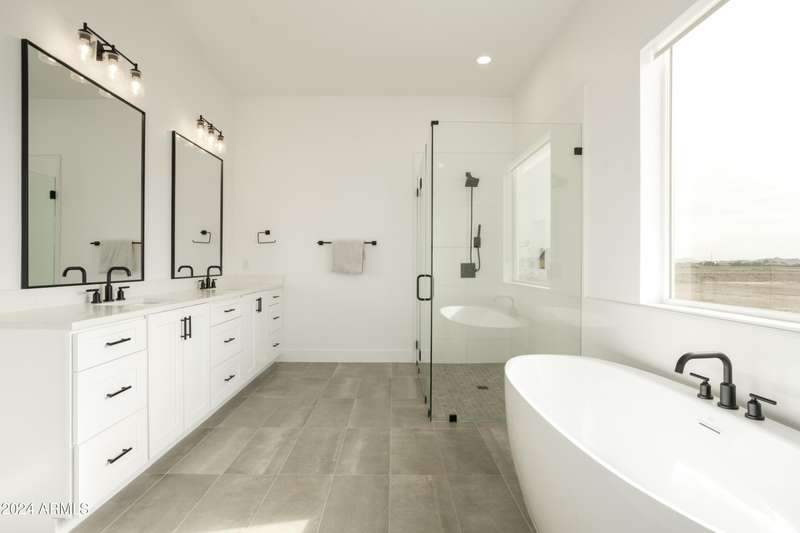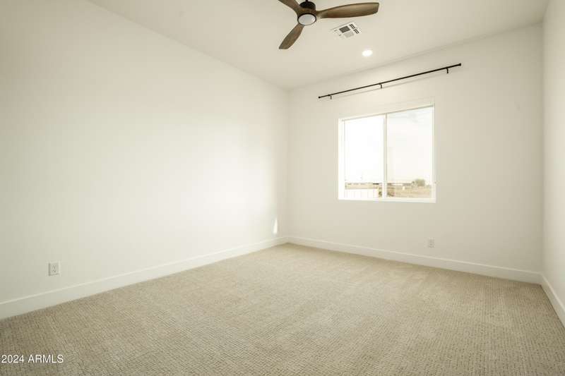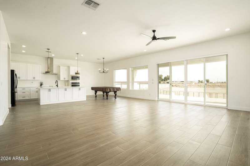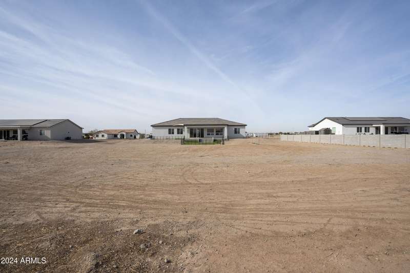 Are you looking for a newer home on a large parcel with NO HOA? This amazing newer built home is situated on a blank slate of an acre, ready for toys, a private park, pool & more! This elegant residence has sleek finishes and is move in ready with washer, dryer, refrigerator, water system, insulated garage doors & other additions. Upon entering the spacious foyer, you immediately see through floor to ceiling sliding doors to this pristine property! The floor plan is open, light and bright...featuring a large kitchen with a massive island. It includes a gourmet package with an abundance of white cabinetry, 42'' uppers and sparkling white quartz counters, all near an elegant dining space with backyard views of a pristine acre. A primary wing has a spa-like bath- perfection awaits!