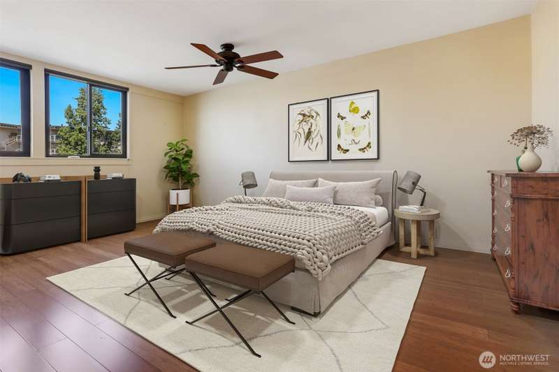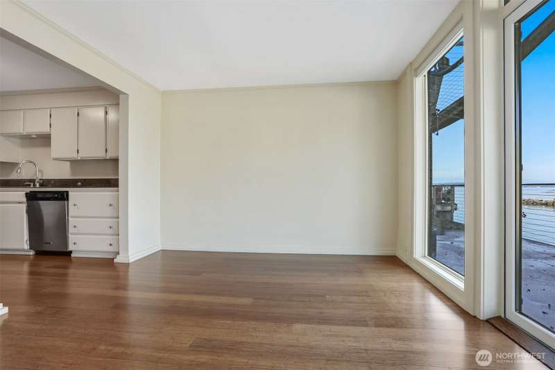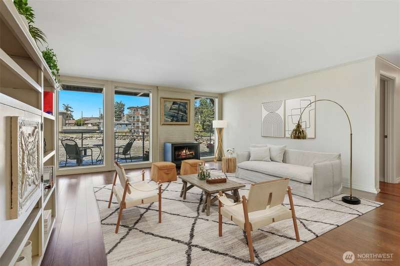 Live like you are on vacation every day at Harbor West! Experience a dreamy waterfront lifestyle with spectacular views & lapping waves! This one floor unit has a very functional floor plan with large rooms for efficient living. Formal living & dining rooms with wall of windows and access to the deck that stretches the length of the unit. The primary suite has a walk-in closet, en-suite bathroom and will fit your King bed! The second bedroom has a murphy bed so you can easily use it for your office while also maintaining space for your guests. Secured garage parking. Building boasts a beach side pool, sauna, storage, and manager. An outdoor enthusiast's paradise with kayak, walking, running, and beach games at your fingertips. Welcome home!