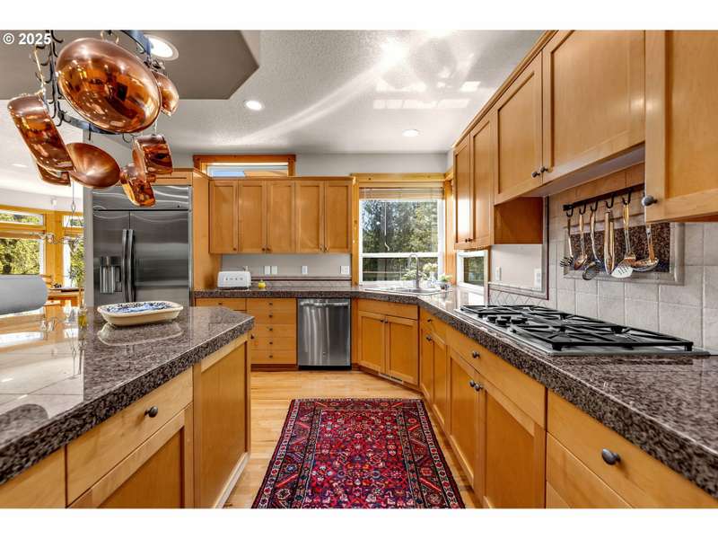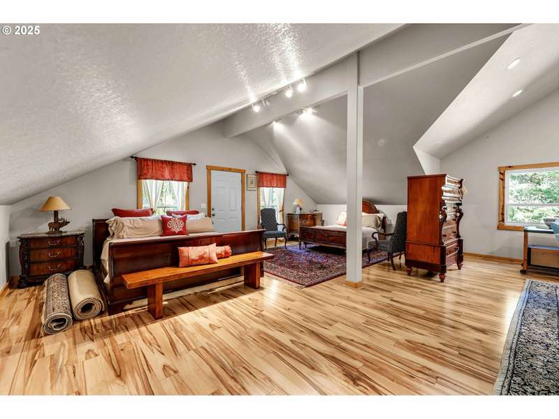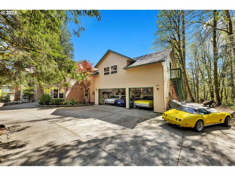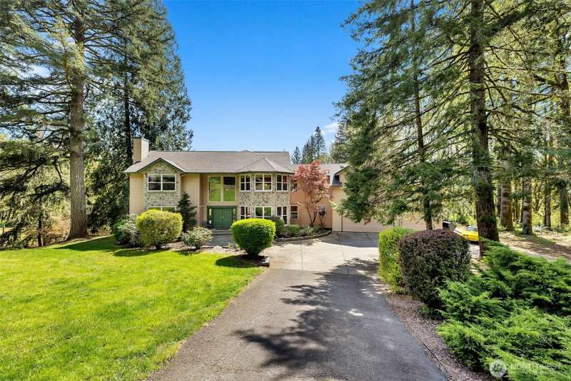 Drive along the Washougal River and through the woods to this refined rural estate. It's time for you to own a slice of paradise. 5+ acres, 5 car oversized garage, large barn with loft (used by current owner as shop for cars), pasture and pond. Property is fenced and remains wooded beyond the pond. Enter this home to be enchanted by high ceilings and warm wood throughout, you will feel at home with several open living spaces that flow from one to the other, large bedrooms, a private office, an open gourmet kitchen and dining area that everyone can enjoy. Several windows overlooking a generous yard and pond views offer plenty of natural light. Upstairs is home to Primary Suite with a huge tile shower with 4 shower heads, soaking tub and beautiful sitting area, 3 additional bedrooms and large bonus area perfect for out of town guests or even a potential ADU. The shop/barn currently holds 7 cars but could easily be used for its original purpose of horse barn, recreation vehicles or the workshop of your dreams, equipped with electricity, tons of storage and an additional covered bay, let your imagination run wild! Spend evenings on a deck with sweeping views of the property or out by the fire pit with friends. Current owners have put on a new roof and new HVAC in the last 5 years, as well as new exterior and interior paint and new carpet, Starlink internet is available and works great. You can simply move in and enjoy all the perks of country living with the ease accessibility to PDX and everyday amenities, making it the perfect blend of Pacific Northwest Living.
