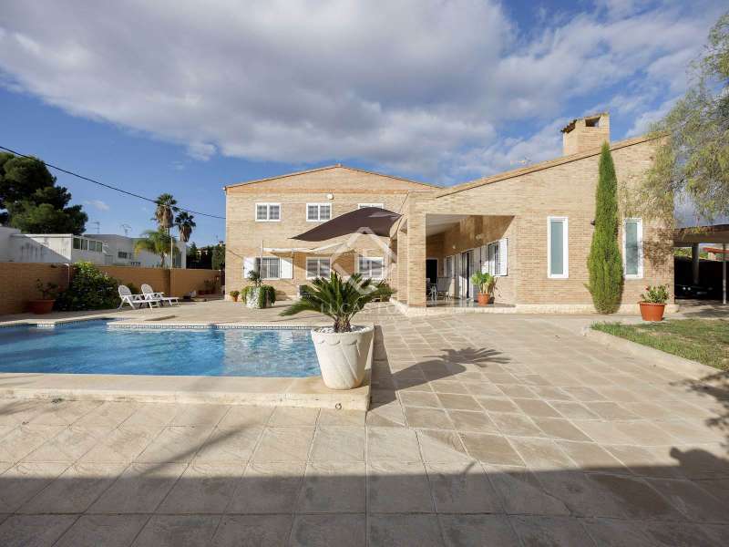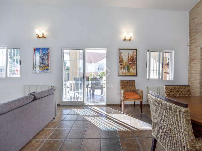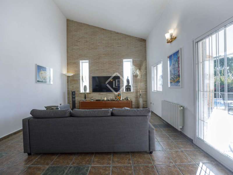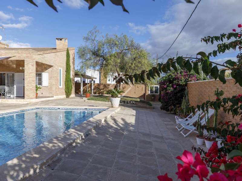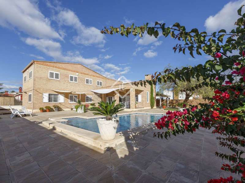 Lucas Fox presents this 426 m² house distributed over two floors and with an exposed brick façade on a corner plot of 860 m² for sale in the exclusive location of La Eliana in Valencia. The main floor has a very functional layout . Firstly, there is an original living-dining room with high ceilings and access to the terrace overlooking the pool. Next, there is a guest bathroom and a fully equipped kitchen with an access door to the barbecue area. Then we move on to the bedroom area, with the main bedroom with private bathroom and dressing room, a full bathroom and two double bedrooms, one currently used as an study. The upper floor has two double bedrooms, a large full bathroom and a surprisingly generously sized bedroom with a living room. The house is ready to move into and has all the amenities, such as split air conditioning, radiator heating, water softener, double glazed windows and alarm, In the exterior area, which offers total privacy, there is a simple but practical garden, presided over by a fantastic swimming pool. We will also find a petanque countryside , a barbecue area and two buildings currently used as storage areas , but which could easily be converted into a guest house. Finally, there is a covered garage with capacity for several vehicles. We invite you to arrange a personalized visit to learn more about this excellent property.