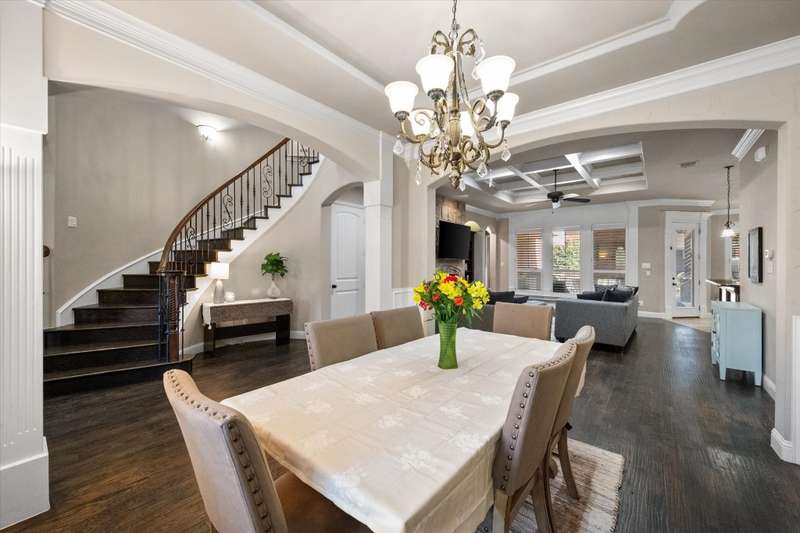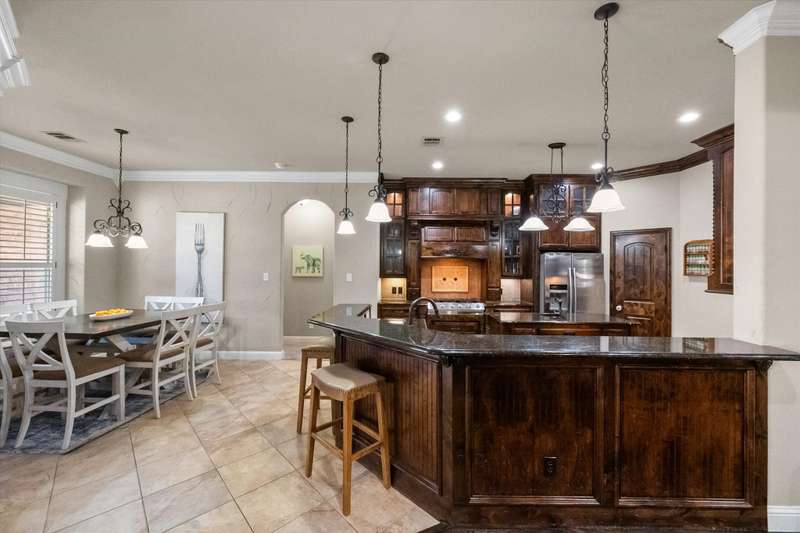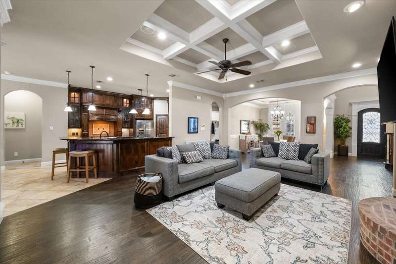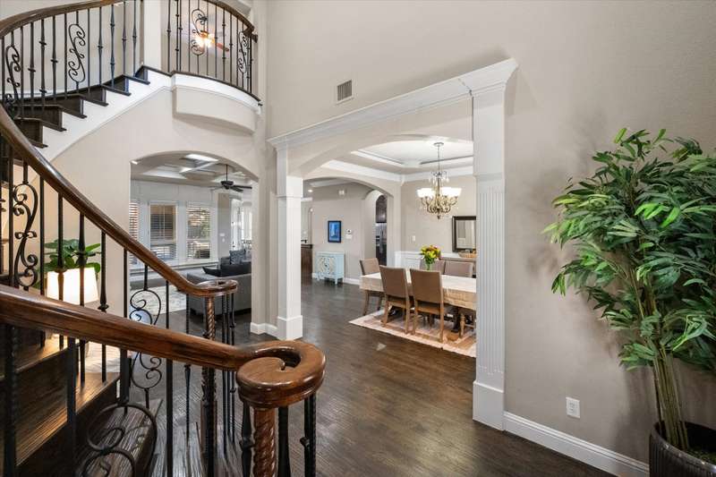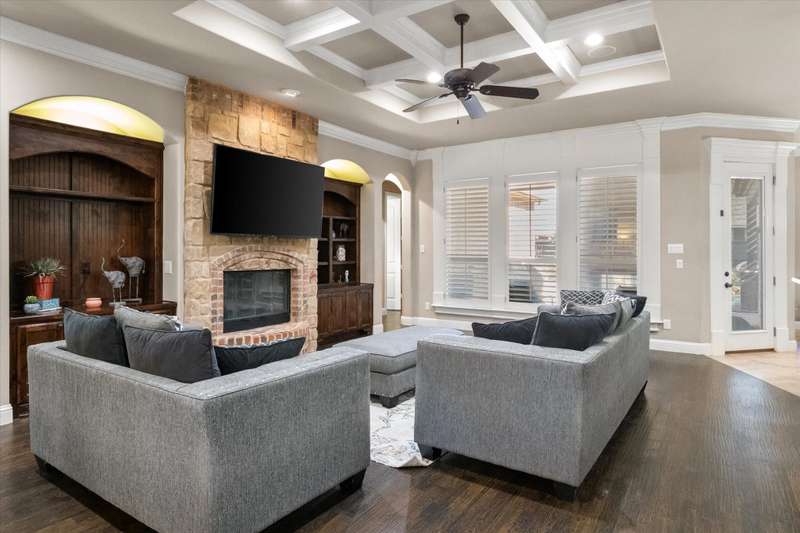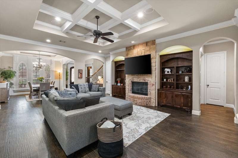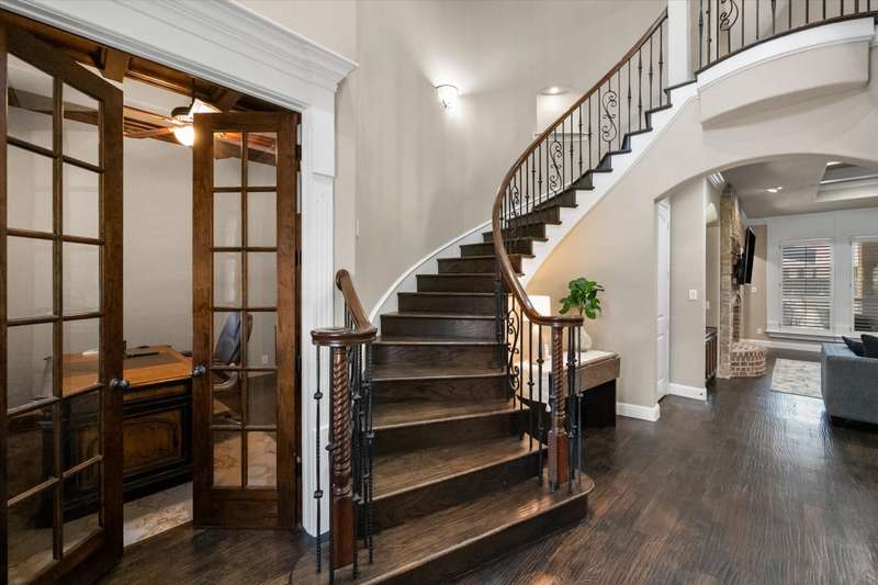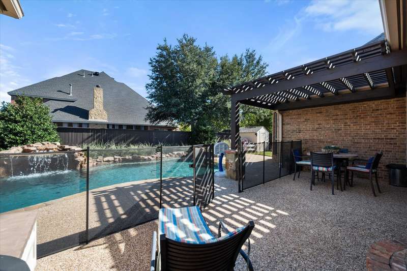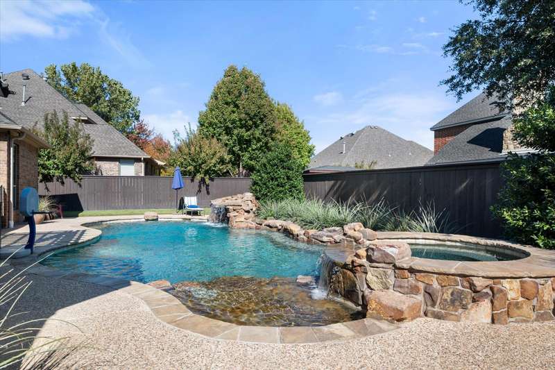 Step into this light-filled, beautifully crafted home in the prestigious gated community of Waterford Parkwhere scenic jogging paths, stocked fishing ponds, and an expansive playground create a lifestyle your family will love. Located within the highly acclaimed Mansfield ISD and just moments from amazing schools, this residence blends elegance, comfort, and convenience. Inside, an inviting open floor plan welcomes you with rich hardwood floors, soaring ceilings, and exquisite custom millwork. The spacious living room is anchored by a warm fireplace and surrounded by windows that flood the home with natural light. The chefs kitchen offers gas cooking, a generous breakfast bar, abundant cabinetry, and seamless flow into the dining and living areasideal for entertaining or enjoying daily family life. Working from home is effortless with a private, designated office on the main level. Also downstairs, the media room provides the perfect spot for movie nights or a quiet escape. The luxurious primary suite features dual sinks, a separate shower, plantation shutters, and a serene ambiance that invites relaxation. Upstairs, a large game room offers an additional space for play, study, or lounginggiving everyone room to spread out. Step outdoors to discover your own personal resort. The backyard oasis is complete with a sparkling diving pool, hot tub, waterfalls, and a grotto designed for unforgettable gatherings. Evenings can be spent around the outdoor fireplace or dining alfresco under the covered patio. This exceptional custom home showcases thoughtful details, timeless craftsmanship, and a light, bright atmosphere throughout. Come experience the beauty, comfort, and lifestyle that make this home truly unforgettable.