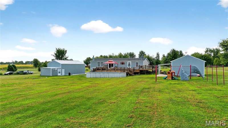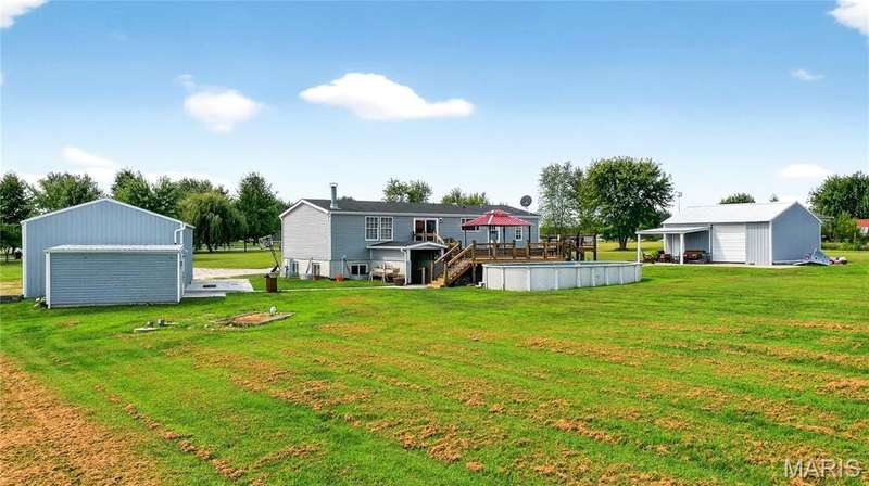 Professional pictures coming soon. Nestled in the heart of WRGHTCTY, Missouri, discover the inviting residence. This property offers comfortable living within a peaceful setting. This home provides a wonderful opportunity to own a property 3 acres with several outbuildings and also a generational living. This residence could be exactly what you have been waiting for. 2 Master Bedrooms, 2 Master Bathrooms with double sink in each. Handicap accessible. Seller has done so much to home including zoned HVAC, NEWER IN 2022. Lower Level has handicap ramp for entrance with family room and Master bedroom huge closet and bath and a spiral staircase leading to main floor. The kitchen has stainless steel appliances, huge island, pantry. Open floor plan family room with built in cabinet & wood burning fireplace. This home has been constructed extra insulation and finished basement. The outbuildings are 24x36 and 20x28 there is also a commercial commissary which could generate extra income. Above ground pool and commercial grade playset. HOA has been paid for buyer until 2027.
