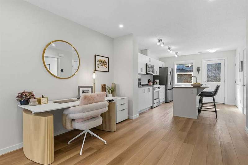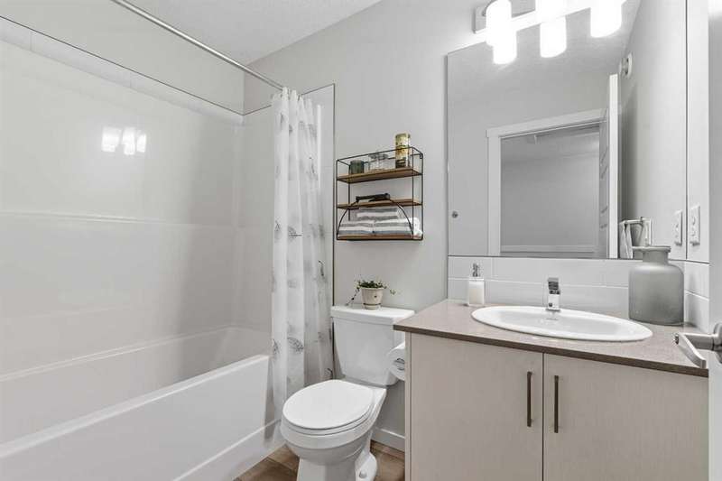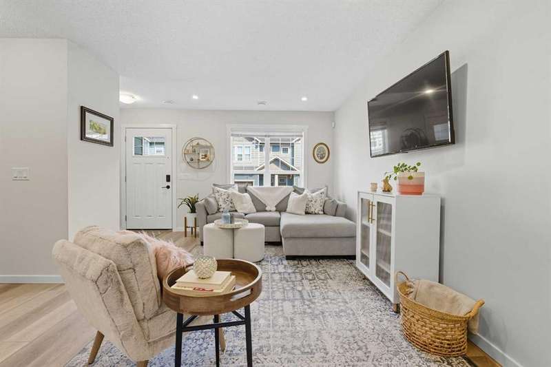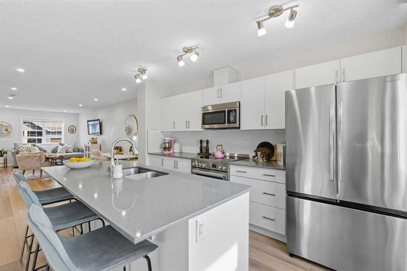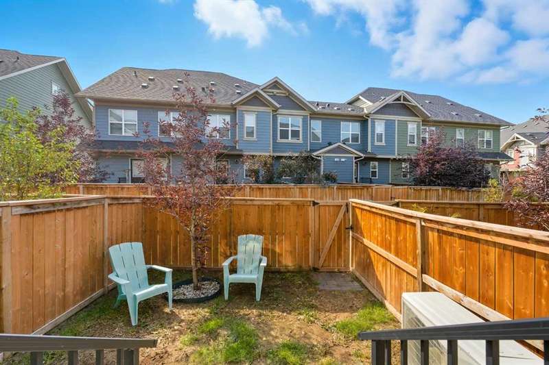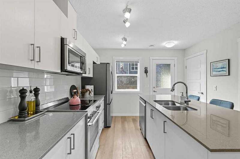 Welcome to your new home in the heart of Cranston Riverstone! This exceptional townhouse offers modern living at its finest. With a bright, sunny interior and pristine condition, it feels fresh and inviting from the moment you step through the door. The expansive living and dining areas create the perfect space for entertaining guests or simply relaxing with loved ones. This area is ideal for a dining area or can be utilized as a bright office space. The main level is enhanced by beautiful luxury vinyl plank flooring throughout, adding warmth and style to the space. At the rear of the home, you'll find a bright kitchen that is sure to impress. It features sleek white cabinetry, elegant grey stone quartz countertops, large white subway tiles, and stainless-steel appliances, including an upgraded refrigerator and dishwasher that offer a touch of sophistication. The large central island and spacious pantry provide plenty of storage and counter space for all your culinary adventures. A convenient 2-piece powder room completes this floor. Upstairs, you'll find two generous bedrooms, each with ample closet space, and two full bathrooms. The primary bedroom includes its own private en-suite, providing a serene retreat. Upstairs laundry facilities make chores a breeze and help keep the living space organized and clutter-free. Located in a prime spot, this townhouse offers easy access to a variety of amenities, including grocery stores and restaurants. For outdoor enthusiasts, enjoy nearby parks perfect for leisurely strolls or outdoor activities. Plus, there's a scenic walkway right behind your home for even more outdoor enjoyment. A true gem in the heart of nature. Your fully fenced southwest-facing backyard offers privacy and a peaceful outdoor space to unwind. And with this complex being pet-friendly, your furry friend will have plenty of room to run and play! Last but not least, the unit boasts a new central AC unit (2024) perfect for year round comfort. Don't miss out on the chance to make this beautiful townhouse your new home. Schedule a showing today and experience modern living at its finest in Zen Riverstone West!