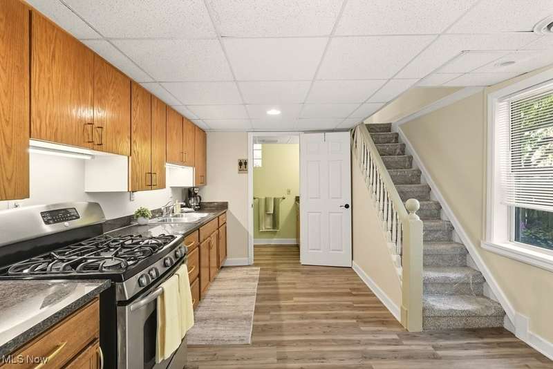 Back on the market at no fault of the seller. This historical home, also formerly utilized as a church, offers exceptional versatility for business or residential use, suiting diverse needs. With four bedrooms and one-and-a-half bathrooms, it provides ample space for families or operations. A bright, ceramic-tiled foyer welcomes guests, leading to updated finishes throughout. The open-concept layout on the main floor creates a spacious feel, while freshly painted walls and engineered hardwood flooring add durability and style. Upstairs, new carpeting enhances comfort in three private bedrooms. The lower level features an updated kitchen with stainless steel appliances, granite countertops, LVT flooring, and modern cabinets. Adjacent is a flexible room-ideal as an office, extra bedroom, or storage-finished with ceramic tile. Another bedroom on this level boasts ceramic tile and a walk-in closet. Both bathrooms have updated fixtures, granite countertops and ceramic tile floors. The walk-out basement opens to a fenced yard, providing privacy for relaxation or entertaining. Additional features include a one-car detached garage and a spacious loft above, perfect for workspace or storage. Conveniently located near Cleveland Hopkins Airport, Fairview Hospital, Rocky River Reservation, shopping, and restaurants, this unique property offers easy access to key amenities. Schedule your showing today!