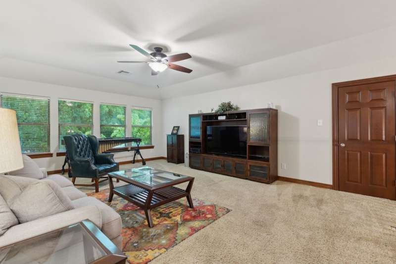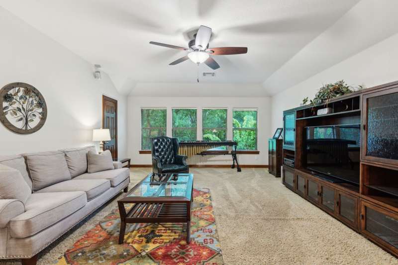 Welcome to your dream home in the prestigious gated community of Winners Circle in Rowlett!This beautifully maintained residence perfectly blends comfort and tranquility and is ideal for everyday living and effortless entertaining.Step inside to discover a spacious, flowing layout centered around a fantastic eat-in kitchen with brand-new 2024 appliances, including a Bosch dishwasher, built-in microwave, and gas cooktop. A formal dining room offers the perfect space for holiday gatherings and special occasions.The inviting living room features a stunning stone fireplace with gas logs, creating a warm, cozy ambiance. Just off the kitchen, a sunroom with windows that offer a view of the large deck overlooking a true backyard sanctuary. Enjoy the beautifully landscaped yard with two separate fire pit areas, perfect for relaxing evenings or entertaining under the stars. The oversized primary suite, located on the main floor, offers peaceful views of the lush backyarda private retreat youll love coming home to. Upstairs, youll find three additional bedrooms, including one with an ensuite bath and an additional full bath. A spacious upstairs living area provides flexible space for a media room, playroom, or home office.Nestled on a quiet cul-de-sac and backing to a greenbelt with glimpses of the lake, this property offers rare privacy and natural beauty in an exclusive community setting. Conveniently located near George Bush Turnpike and I-30, youll enjoy easy access to everything the area has to offer.Additional updates include new downstairs HVAC in 2024, upstairs HVAC in 2022, Gas water heater for downstairs in 2025.Dont miss this rare opportunity to own a home that truly has it allschedule your private tour today!