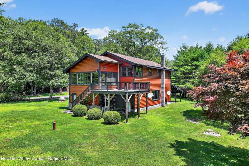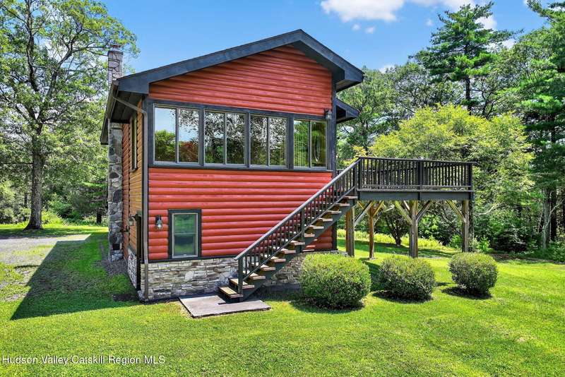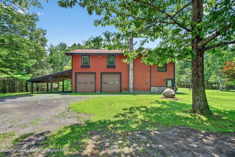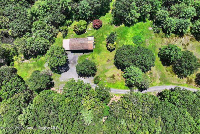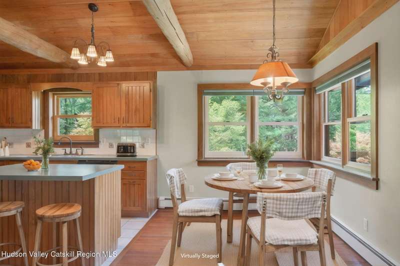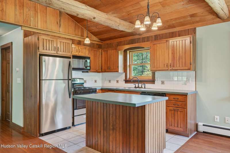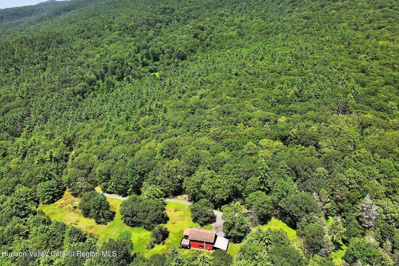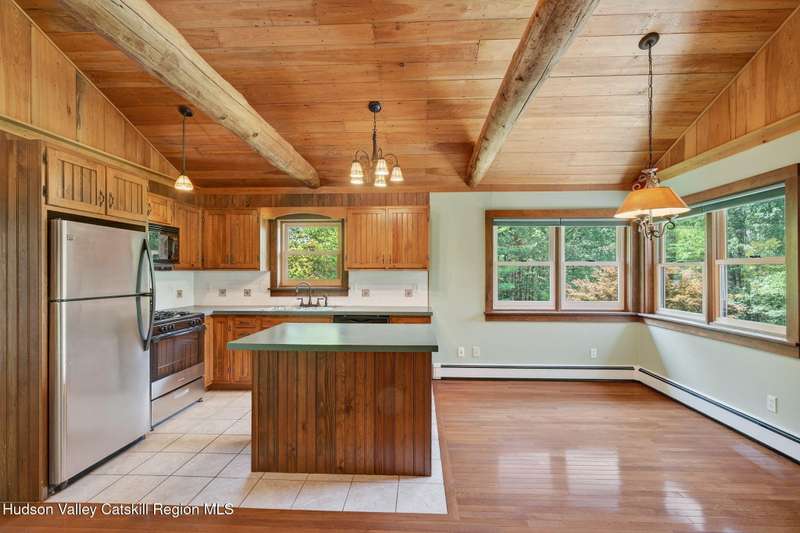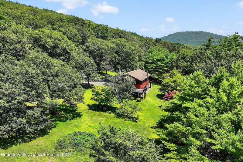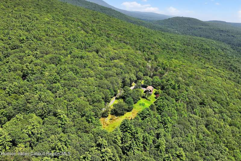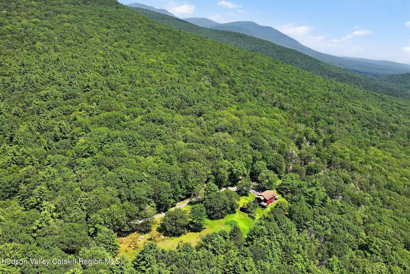 Tucked away at the end of a quiet private road near the top of Roundtop Mountain, this 2-bedroom, 1-bath home offers serene seclusion surrounded by protected DEP land and a private forest preserve. A true nature lover's paradise, the property is alive with wildlife and boasts beautifully landscaped grounds, seasonal mountain views, and the potential for year-round vistas with the clearing of several tall pines. Relax under the stars on the peaceful deck or sip your morning coffee in the spacious sunroom just off the kitchen and dining area, where you can watch deer and birds wander through the yard. Below the sunroom is an additional room with its own private entrance-perfect for guest accommodations, a home office, art studio, or a quiet creative retreat. The kitchen features stainless steel appliances, including a brand-new gas range (2024), and offers both style and functionality. The home is equipped with a new oil-fired baseboard heating system and hot water, plus a 2-year-old mini split for efficient heat and air conditioning. All utilities, including electric and cable, are underground for a clean, reliable setup. The attached garage is oversized and offers exciting potential-easily reimagined as expanded living space while still utilizing the carport for your vehicles. Ideally located just minutes from Wilson State Park and the charming villages of Woodstock and Phoenicia, you'll have easy access to hiking, swimming, dining, live music, and shopping-all while enjoying the peace, privacy, and beauty of your own mountain hideaway.