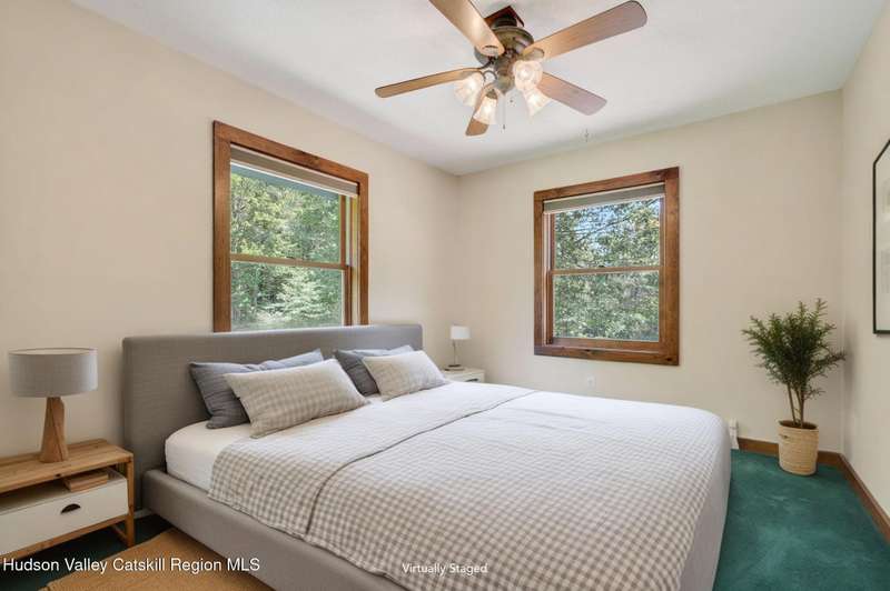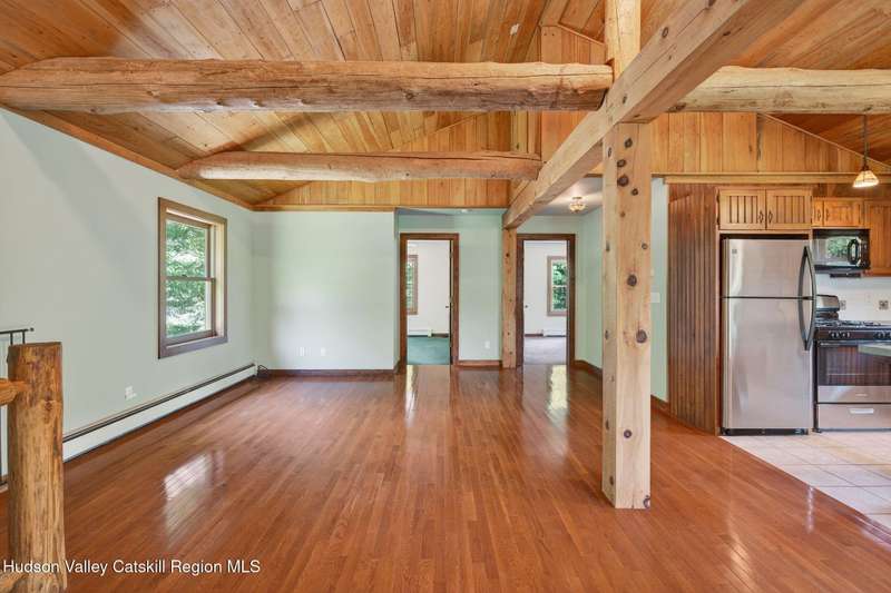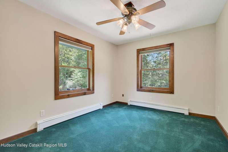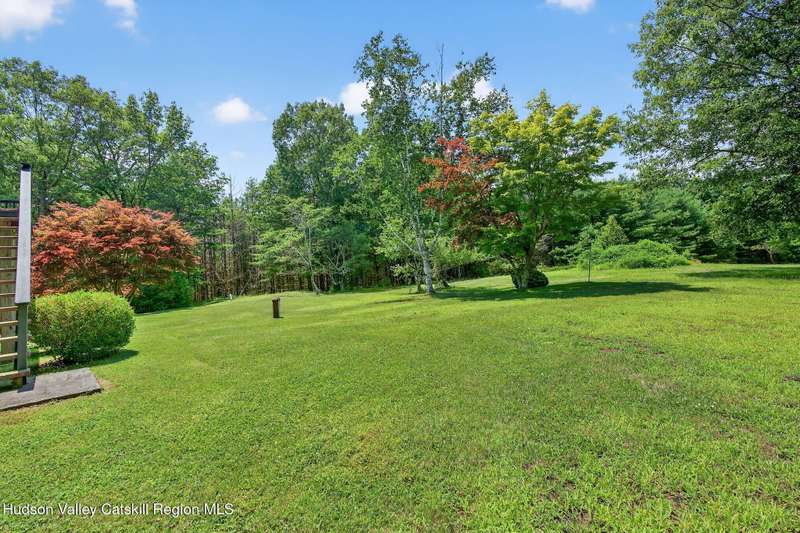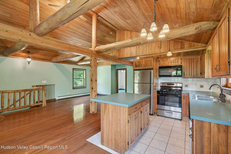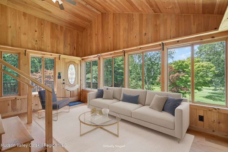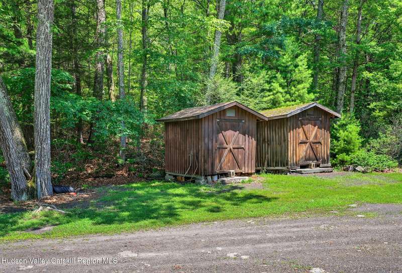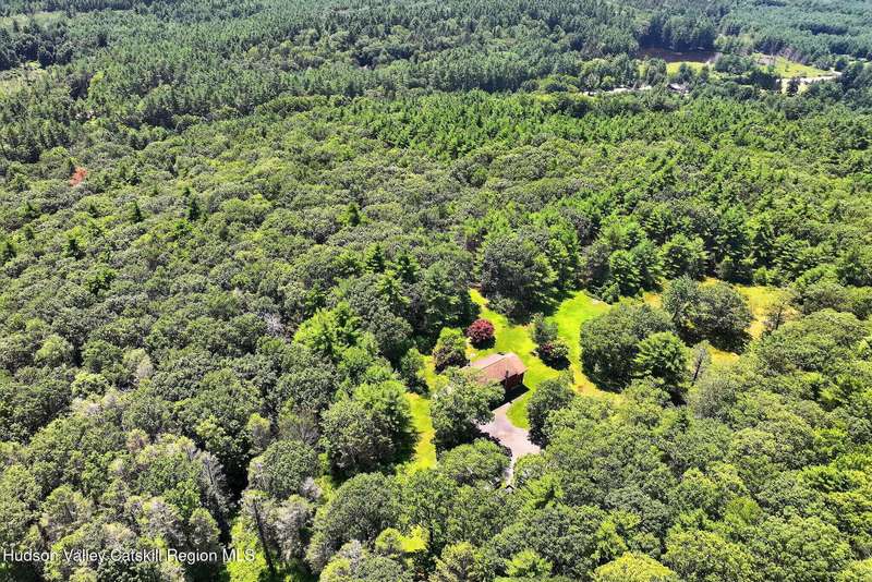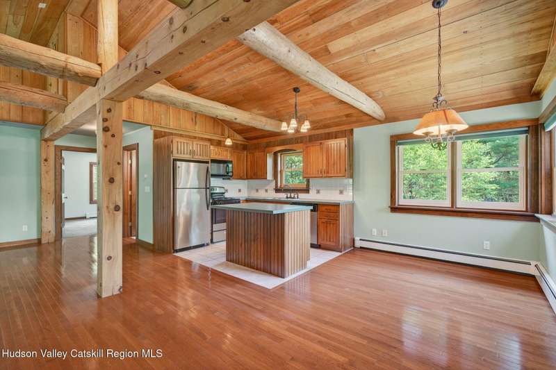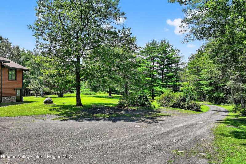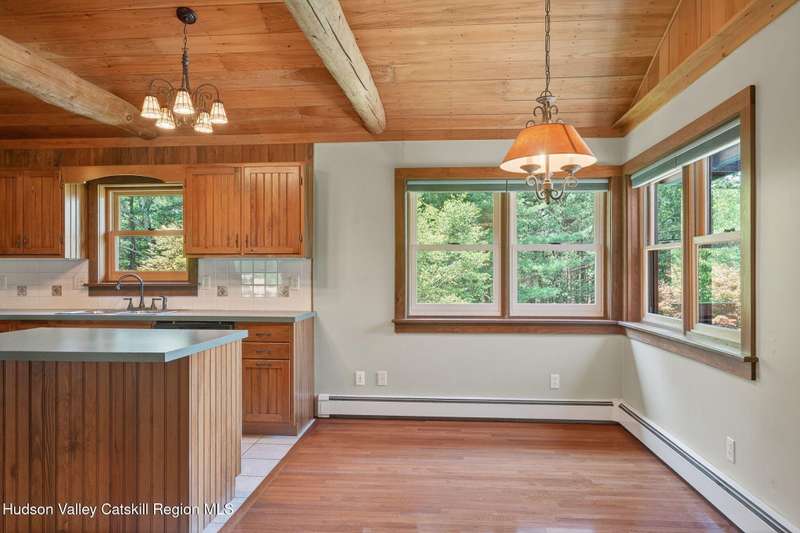 Tucked away at the end of a quiet private road near the top of Roundtop Mountain, this 2-bedroom, 1-bath home offers serene seclusion surrounded by protected DEP land and a private forest preserve. A true nature lover's paradise, the property is alive with wildlife and boasts beautifully landscaped grounds, seasonal mountain views, and the potential for year-round vistas with the clearing of several tall pines. Relax under the stars on the peaceful deck or sip your morning coffee in the spacious sunroom just off the kitchen and dining area, where you can watch deer and birds wander through the yard. Below the sunroom is an additional room with its own private entrance-perfect for guest accommodations, a home office, art studio, or a quiet creative retreat. The kitchen features stainless steel appliances, including a brand-new gas range (2024), and offers both style and functionality. The home is equipped with a new oil-fired baseboard heating system and hot water, plus a 2-year-old mini split for efficient heat and air conditioning. All utilities, including electric and cable, are underground for a clean, reliable setup. The attached garage is oversized and offers exciting potential-easily reimagined as expanded living space while still utilizing the carport for your vehicles. Ideally located just minutes from Wilson State Park and the charming villages of Woodstock and Phoenicia, you'll have easy access to hiking, swimming, dining, live music, and shopping-all while enjoying the peace, privacy, and beauty of your own mountain hideaway.