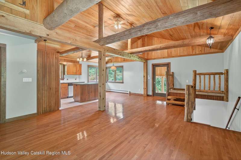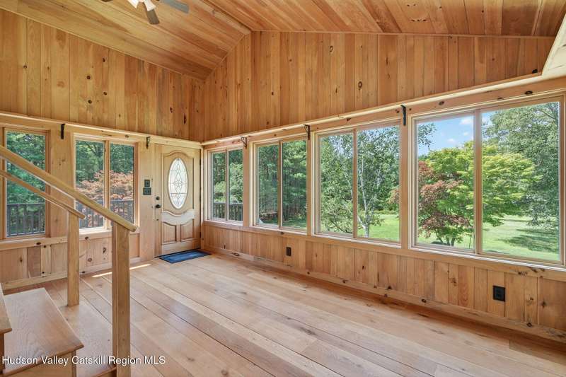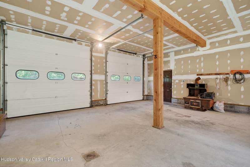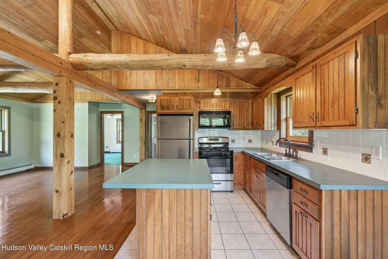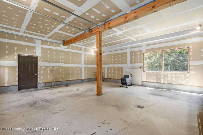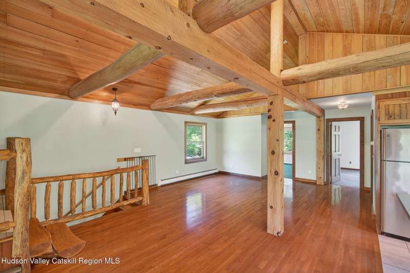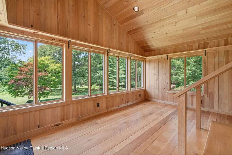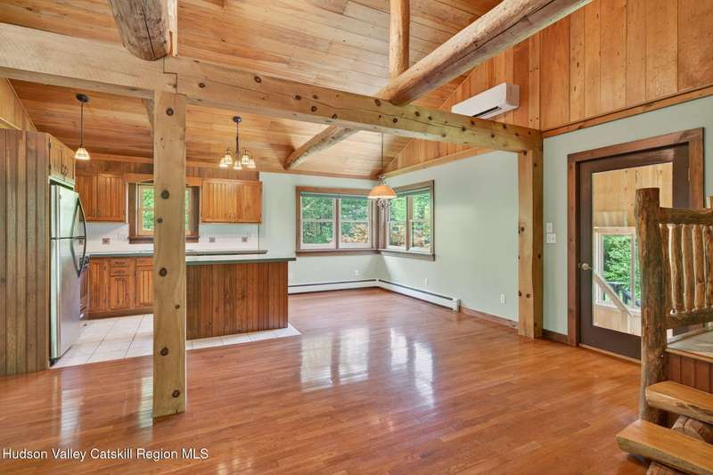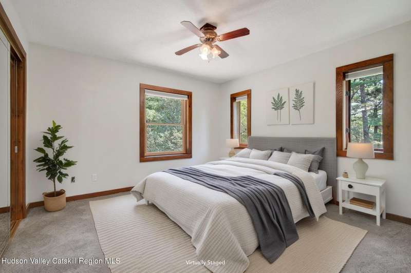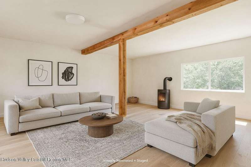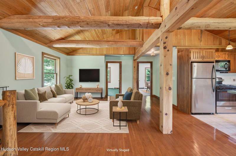 Tucked away at the end of a quiet private road near the top of Roundtop Mountain, this 2-bedroom, 1-bath home offers serene seclusion surrounded by protected DEP land and a private forest preserve. A true nature lover's paradise, the property is alive with wildlife and boasts beautifully landscaped grounds, seasonal mountain views, and the potential for year-round vistas with the clearing of several tall pines. Relax under the stars on the peaceful deck or sip your morning coffee in the spacious sunroom just off the kitchen and dining area, where you can watch deer and birds wander through the yard. Below the sunroom is an additional room with its own private entrance-perfect for guest accommodations, a home office, art studio, or a quiet creative retreat. The kitchen features stainless steel appliances, including a brand-new gas range (2024), and offers both style and functionality. The home is equipped with a new oil-fired baseboard heating system and hot water, plus a 2-year-old mini split for efficient heat and air conditioning. All utilities, including electric and cable, are underground for a clean, reliable setup. The attached garage is oversized and offers exciting potential-easily reimagined as expanded living space while still utilizing the carport for your vehicles. Ideally located just minutes from Wilson State Park and the charming villages of Woodstock and Phoenicia, you'll have easy access to hiking, swimming, dining, live music, and shopping-all while enjoying the peace, privacy, and beauty of your own mountain hideaway.