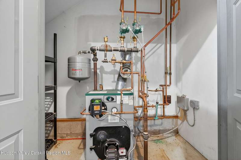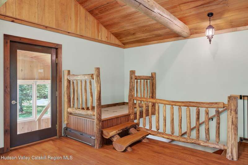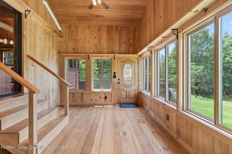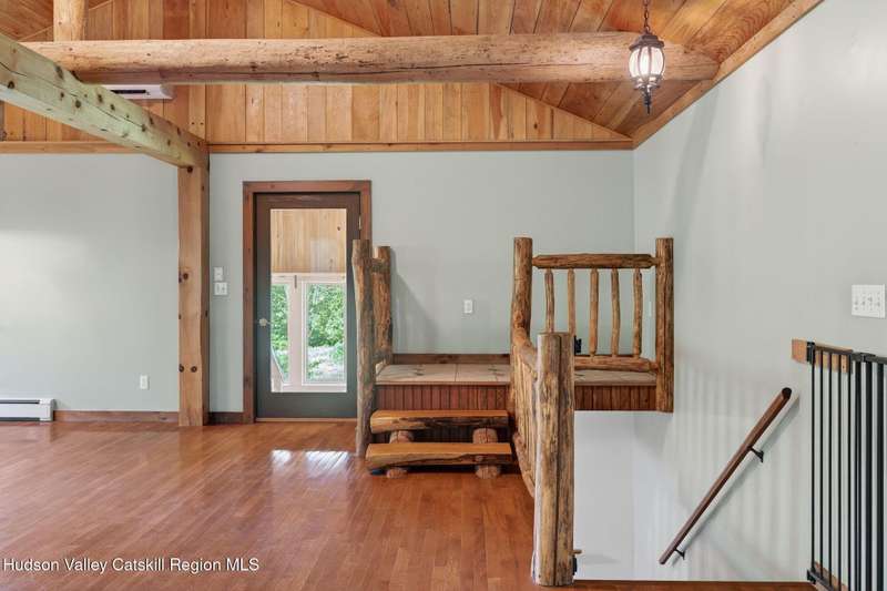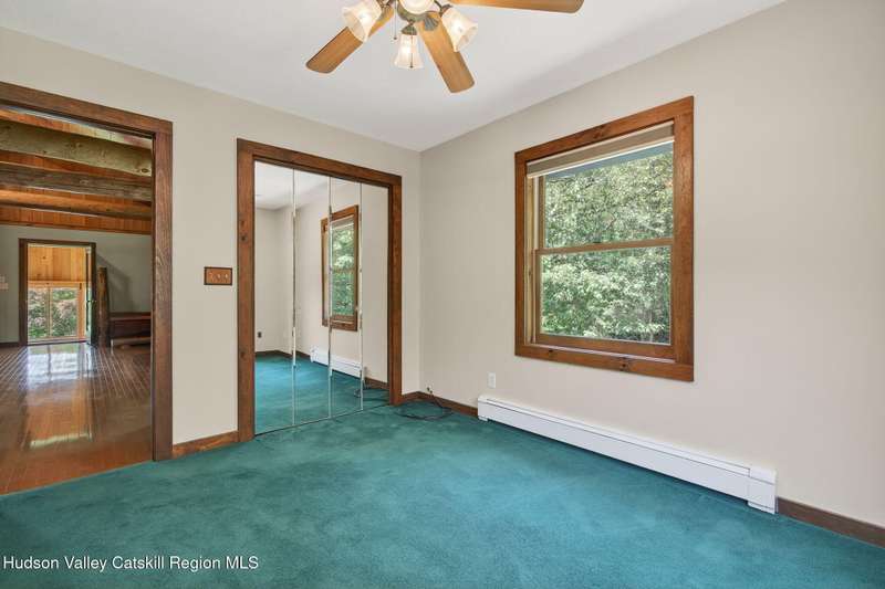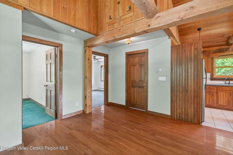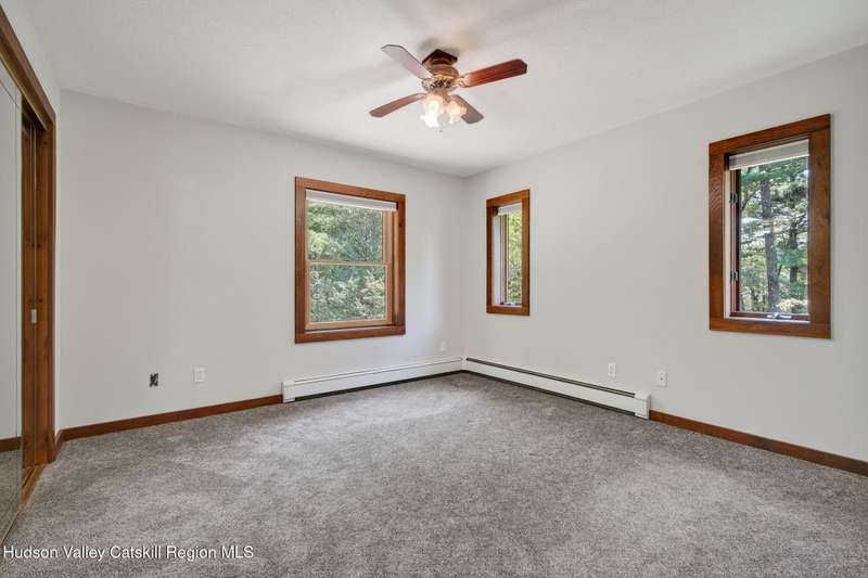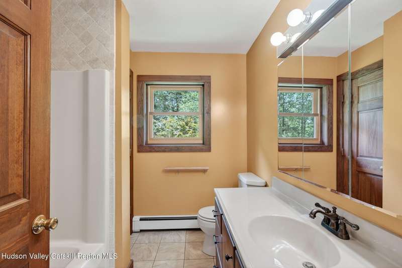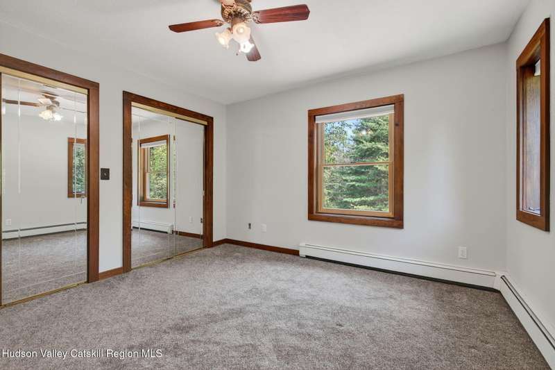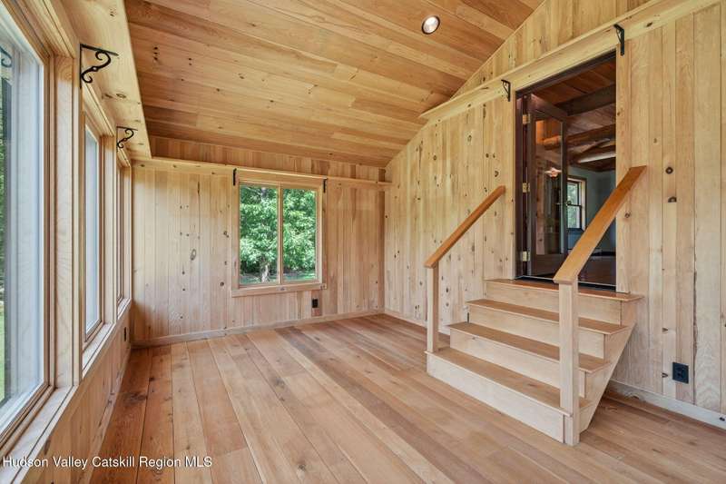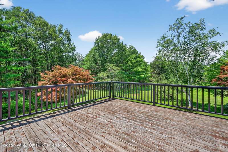 Tucked away at the end of a quiet private road near the top of Roundtop Mountain, this 2-bedroom, 1-bath home offers serene seclusion surrounded by protected DEP land and a private forest preserve. A true nature lover's paradise, the property is alive with wildlife and boasts beautifully landscaped grounds, seasonal mountain views, and the potential for year-round vistas with the clearing of several tall pines. Relax under the stars on the peaceful deck or sip your morning coffee in the spacious sunroom just off the kitchen and dining area, where you can watch deer and birds wander through the yard. Below the sunroom is an additional room with its own private entrance-perfect for guest accommodations, a home office, art studio, or a quiet creative retreat. The kitchen features stainless steel appliances, including a brand-new gas range (2024), and offers both style and functionality. The home is equipped with a new oil-fired baseboard heating system and hot water, plus a 2-year-old mini split for efficient heat and air conditioning. All utilities, including electric and cable, are underground for a clean, reliable setup. The attached garage is oversized and offers exciting potential-easily reimagined as expanded living space while still utilizing the carport for your vehicles. Ideally located just minutes from Wilson State Park and the charming villages of Woodstock and Phoenicia, you'll have easy access to hiking, swimming, dining, live music, and shopping-all while enjoying the peace, privacy, and beauty of your own mountain hideaway.