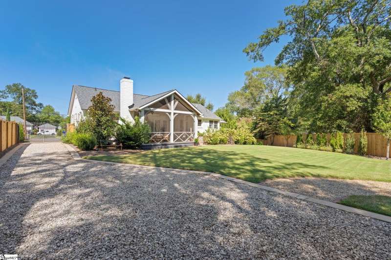 Welcome to 209 Rice Street — a beautifully renovated home that perfectly blends timeless appeal with modern charm. Move-in ready and shining from every angle, this home offers thoughtful updates inside and out, creating peace of mind and the feeling of a boutique weekend getaway right in the heart of one of Greenville’s most sought-after neighborhoods. Notable features include a new roof, chef’s kitchen, updated crawl space and ductwork, and fabulous outdoor spaces. The nearly half-acre corner lot offers privacy and an outdoor oasis with completely refreshed landscaping, new hardscape, and a full perimeter fence. The updated chef’s kitchen features high-end stainless steel appliances and a cozy breakfast nook that opens to a large deck — perfect for grilling or dining al fresco overlooking the terrace garden and spacious backyard. A formal dining room sets the stage for memorable gatherings and flows into a showstopping screened-in porch with a wood-burning fireplace, ideal for year-round enjoyment. A bright room full of windows off the den can serve as an office, playroom, or relaxing sunroom. Downstairs, the terrace-level primary suite is a true retreat, offering total privacy, a large walk-in closet, and a luxurious bath. Step outside to your private terrace to enjoy morning coffee or a quiet evening unwind. Boutique comfort meets classic Augusta Road living — welcome home.