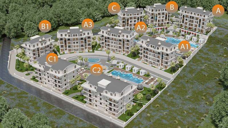 Exclusive apartments are situated in the coastal town of Alanya in Turkler. Turkler is a town located amidst nature, with rapidly developing social amenities. Turkler became a popular destination for its beach.