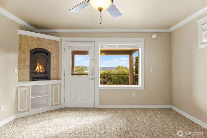 Perched above Drayton Harbor, this stunning Seascape Waterfront Condo offers panoramic views of Semiahmoo and beyond. This spacious 3-bedroom, 2-bath corner unit blends comfort and style with hardwood floors, granite countertops, and brand new carpet. The open layout is perfect for entertaining, featuring a gas fireplace in both the living room and primary suite. Enjoy sunsets from your covered patio, with views that never get old. The primary suite includes a walk-in closet, radiant floor heat in the bath, and private patio access. Individual garage, elevator access, fitness room, and spa included. All this just a short walk to shops, restaurants, Marine Park, and minutes to the Canadian border and I-5.
