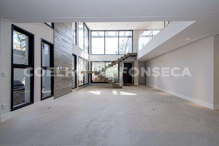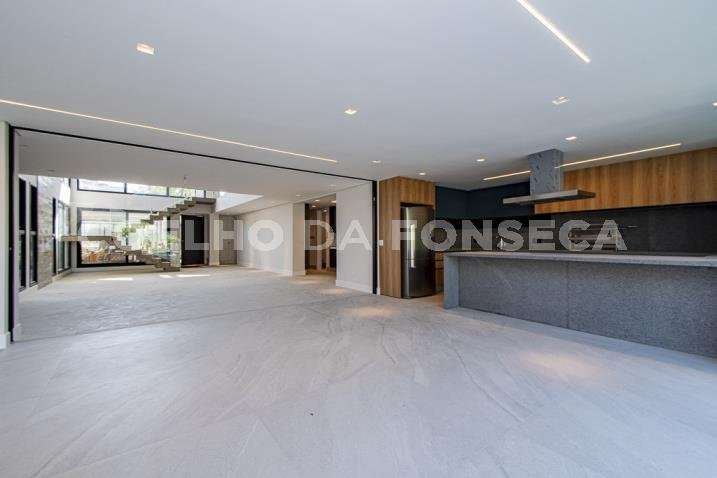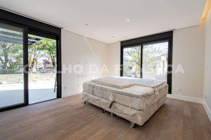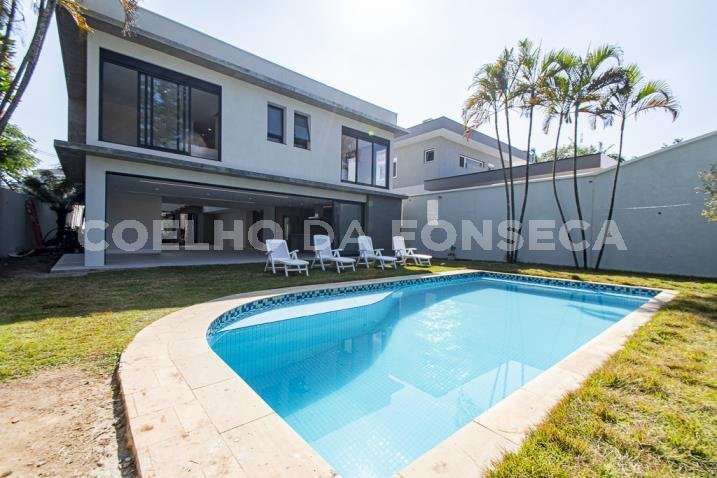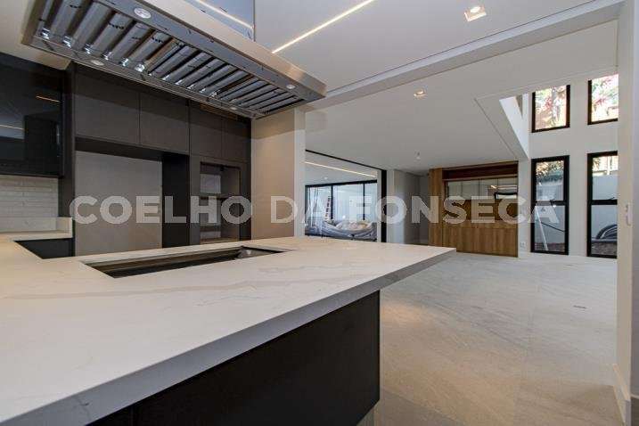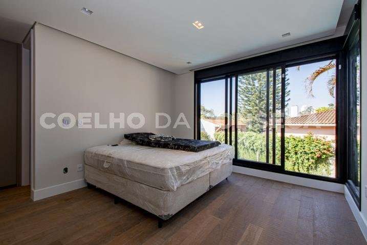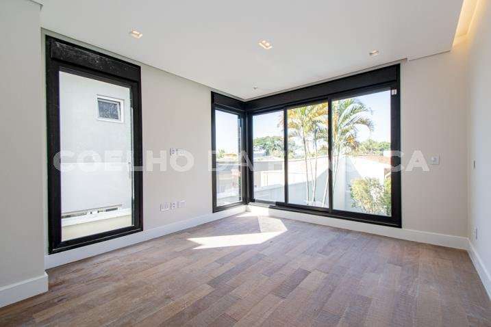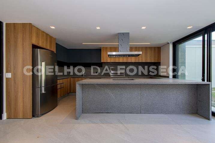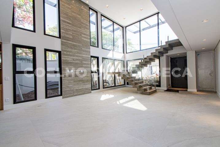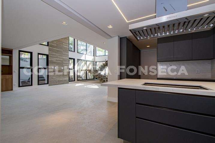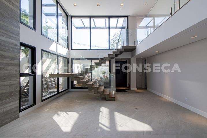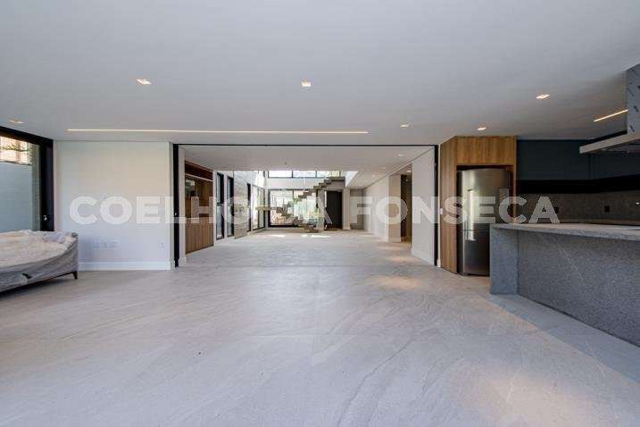 O living para dois ambientes tem pé-direito duplo, trazendo iluminação abundante. A varanda gourmet conta com cooktop e duas churrasqueiras, uma a gás e outra a carvão. A área social dispõe também de home theater, cozinha e lavabo. Na parte íntima, são quatro suítes, todas com janelões e persianas elétricas. A suíte master conta ainda com walk-in closet e varanda. Há também roupeiro e escritório. A casa tem climatização, segurança de gaiola para delivery e quatro vagas na garagem.