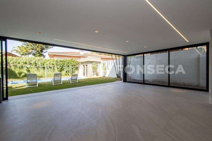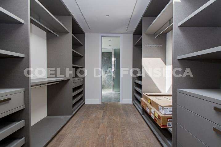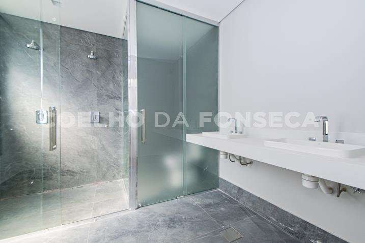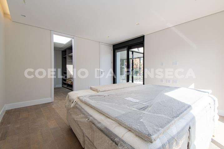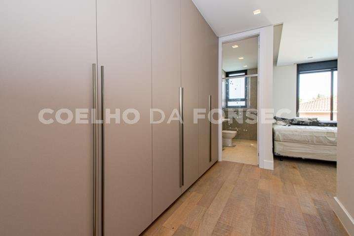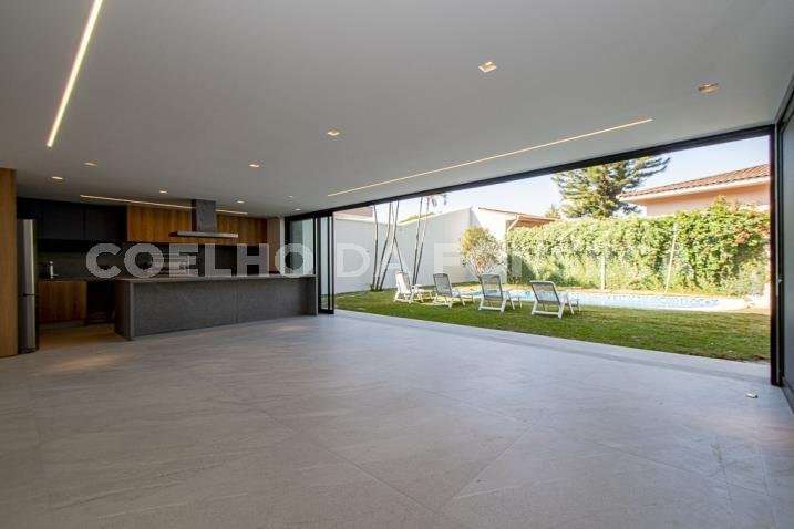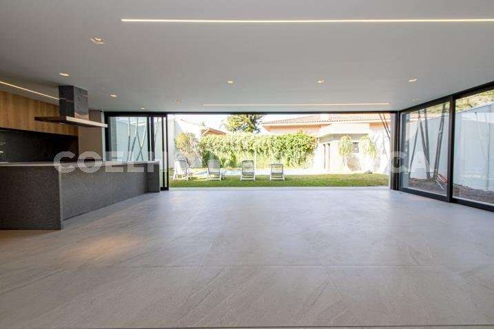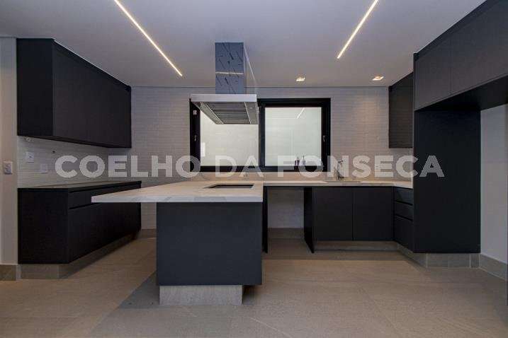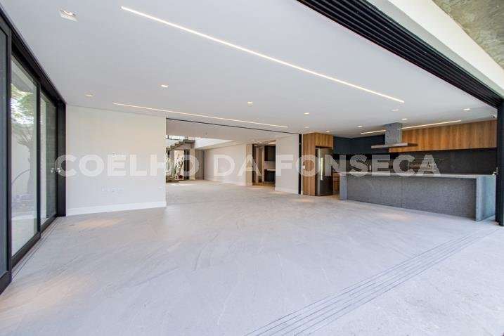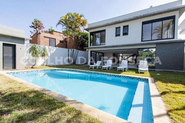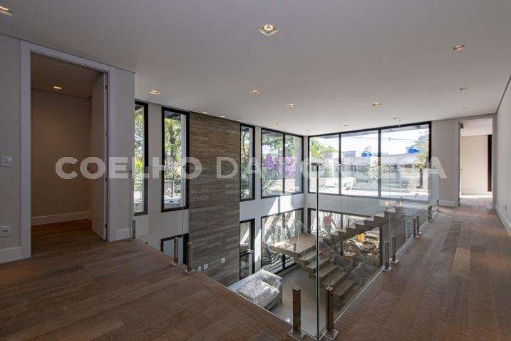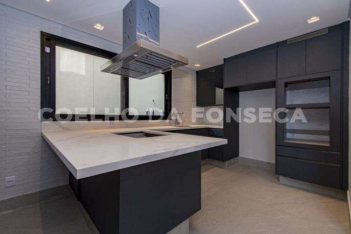 O living para dois ambientes tem pé-direito duplo, trazendo iluminação abundante. A varanda gourmet conta com cooktop e duas churrasqueiras, uma a gás e outra a carvão. A área social dispõe também de home theater, cozinha e lavabo. Na parte íntima, são quatro suítes, todas com janelões e persianas elétricas. A suíte master conta ainda com walk-in closet e varanda. Há também roupeiro e escritório. A casa tem climatização, segurança de gaiola para delivery e quatro vagas na garagem.