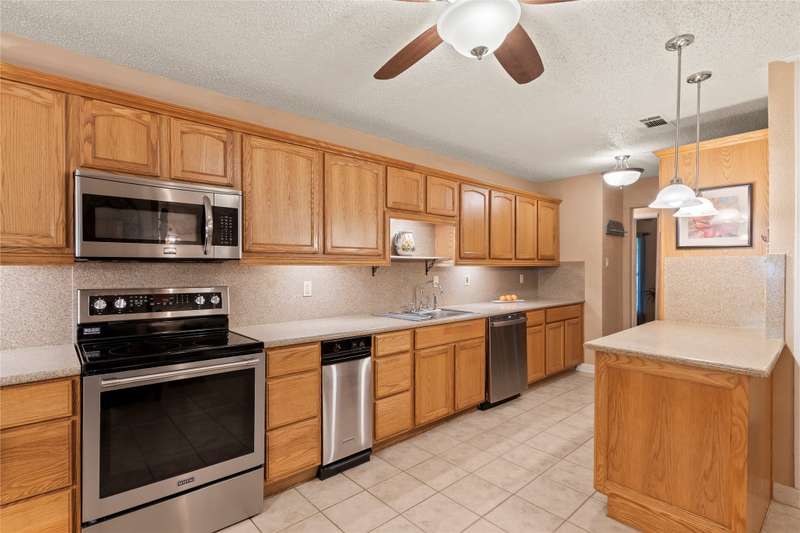 Located in the sought-after subdivision of Spanish Shores, just across the street from Cedar Creek Lake, this one-story home offers boat and RV parking with access to a private boat launch. This well-maintained, one-owner home sits on a large corner lot with laminate and tile floors throughoutno carpet. Both HVAC units were replaced within the last 5 years, and the roof is less than one year old. The home features formal dining plus a breakfast area and a spacious living area, including a fireplace in the dining area with gas logs. Large windows throughout feature solar screens that enhance energy efficiency without compromising natural light. The expansive kitchen boasts man-made granite countertops, stainless steel appliances, and wood cabinets with pull-out shelves and Lazy Susans. The primary suite includes three closets, including a large walk-in, plus a bath with a glass-surround shower, soaking tub, and dual vanity. The very functional utility room provides storage and space for a standalone fridge, freezer, and extra shelving.The property offers three driveways for ample parking, including space for RVs and boats, with room to build a garage (HOA approval required). The workshop includes electric, a workbench, and additional storage for convenience.The backyard is shaded by mature oak trees, perfect for entertaining or relaxing. Enjoy the conveniences of nearby Gun Barrel City, including shopping, dining, and local amenities, while living in a peaceful, gated lakeside community. Located just 1 hour from Dallas, this property is ideal as a full-time residence.
