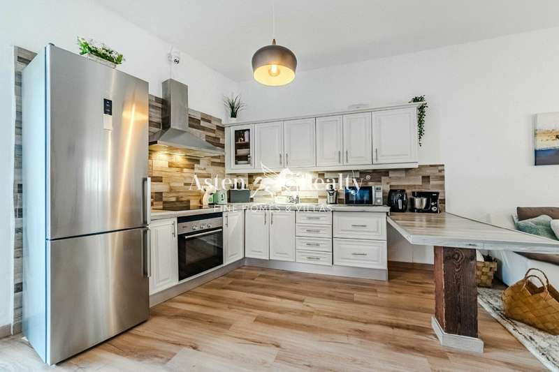 The apartment is on the ground floor, with a private terrace with a swimming pool and a solarium on the roof of the building. It has a constructed area of 115 m2, there is also a large terrace on the main floor (with laundry area), it consists of 3 bedrooms, 2 bathrooms, open kitchen with dining area and a hall. Year of construction is 1989, but it was renovated (the building and the apartment) a few years ago. Without community fees, there are only 2 neighboring apartments. It is for sale fully equipped and furnished.