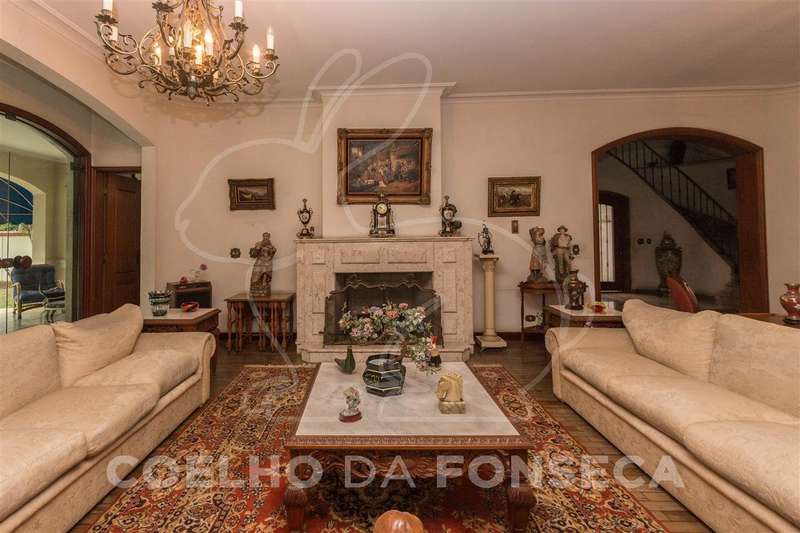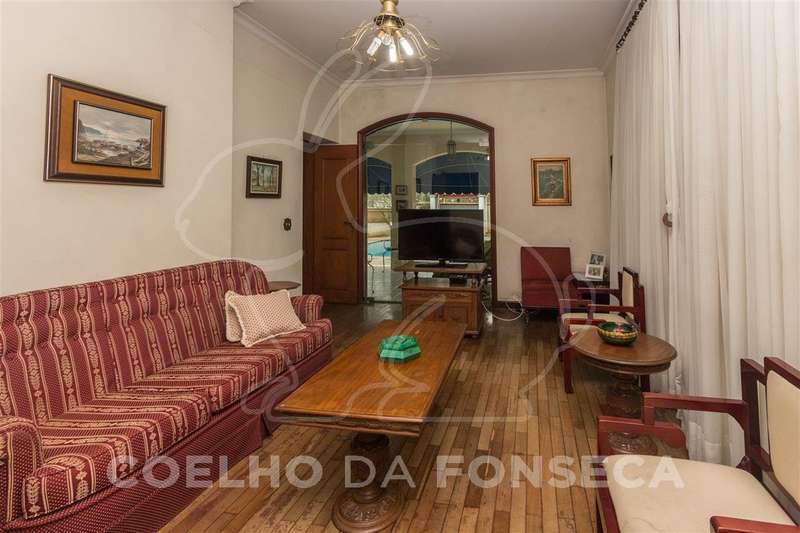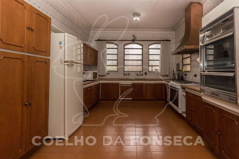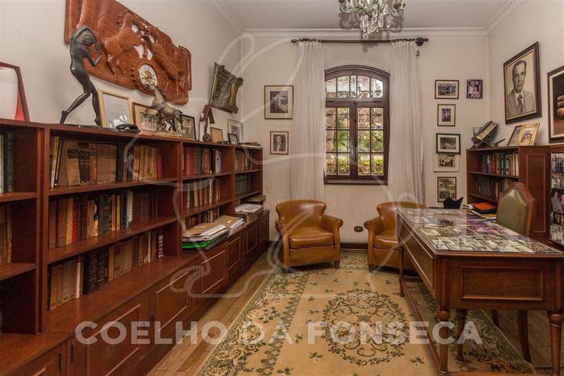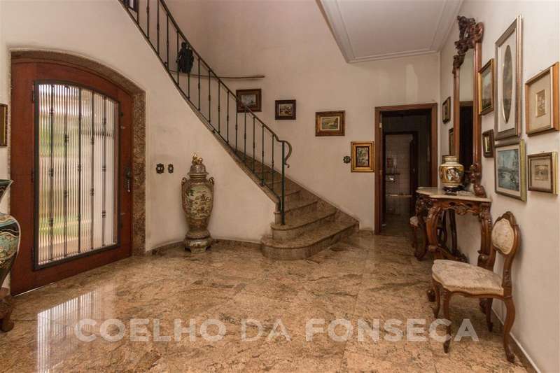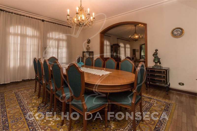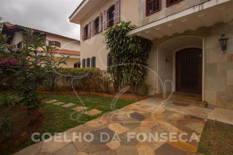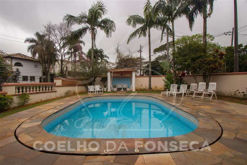 Casa conservada. Localizada na parte mais alta do bairro, proporcionando uma vista ímpar. Possui hall de distribuição para vários ambientes, living voltado para o jardim e piscina. Acabamento em madeira, elevador, sala de almoço e jantar. São cinco suítes amplas, iluminadas e com varanda. Com copa, cozinha, área de serviço com dois dormitórios e sala para motorista. Vagas para oito automóveis.