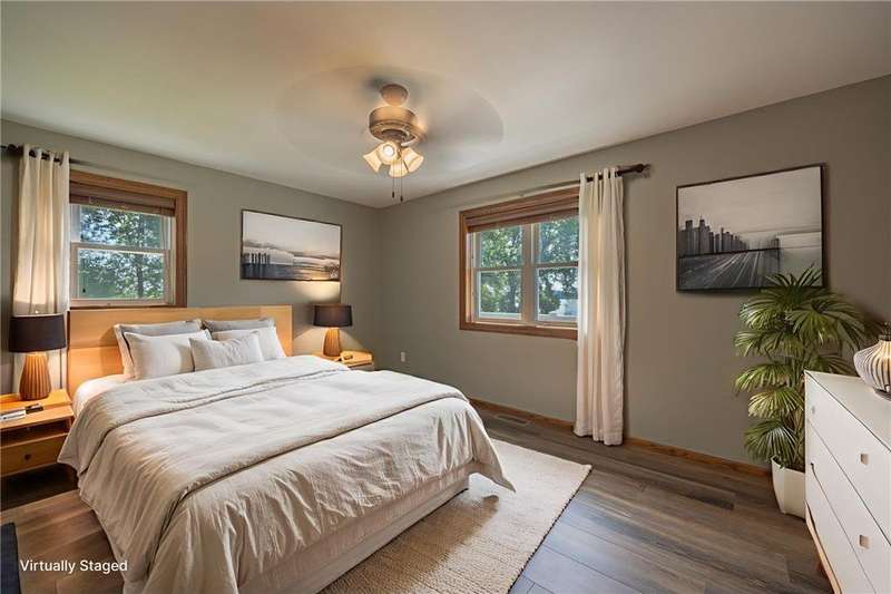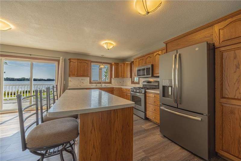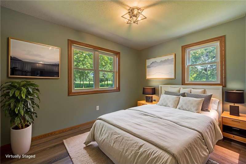 Discover tranquil lakefront living on a private lake—great for recreation and enjoying the water. This beautifully updated home is nestled in a peaceful, desirable neighborhood and offers 4 spacious bedrooms and 3 modern bathrooms. Recent upgrades include fresh paint, new flooring, energy-efficient heating and cooling, and new windows that flood the open floor plan with natural light. An attached 2-car garage, heated and cooled for added convenience, enhances functionality. Set on an expansive 6.5-acre lot ideal for outdoor entertaining or cozy evenings around the firepit, the property delivers breathtaking views of eagles soaring above the lake and deer grazing nearby. Additional features include a 22x35 heated and cooled shop for year-round projects and a 48x35 storage shed to keep outdoor toys secure. With a new air conditioner and a quiet setting that still offers excellent access to nearby amenities and friendly neighbors, this modern, tranquil retreat perfectly balances serenity and convenience. Schedule your private showing today to experience all the exceptional features this lakefront property has to offer!