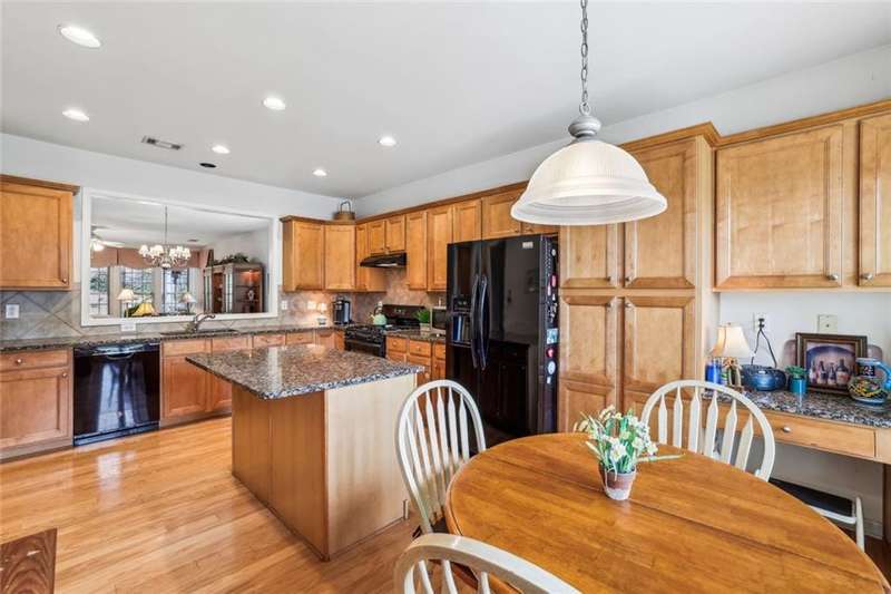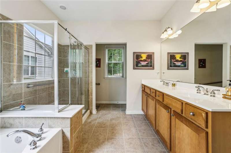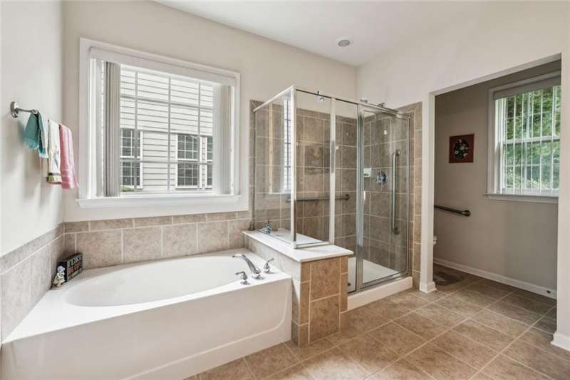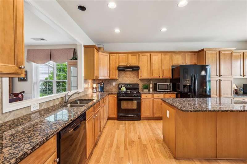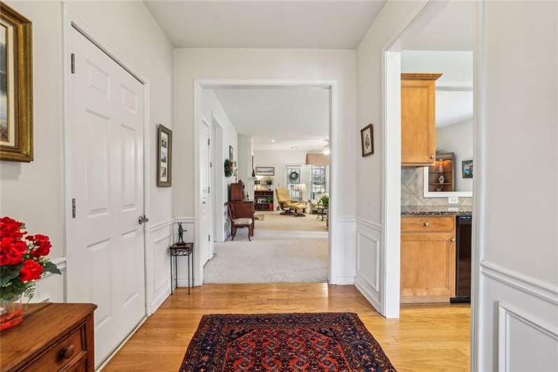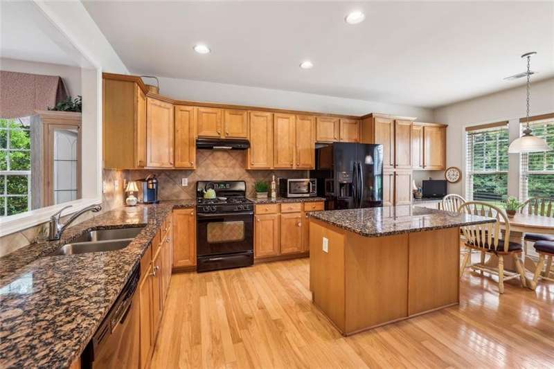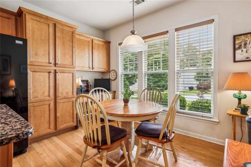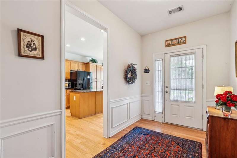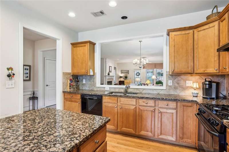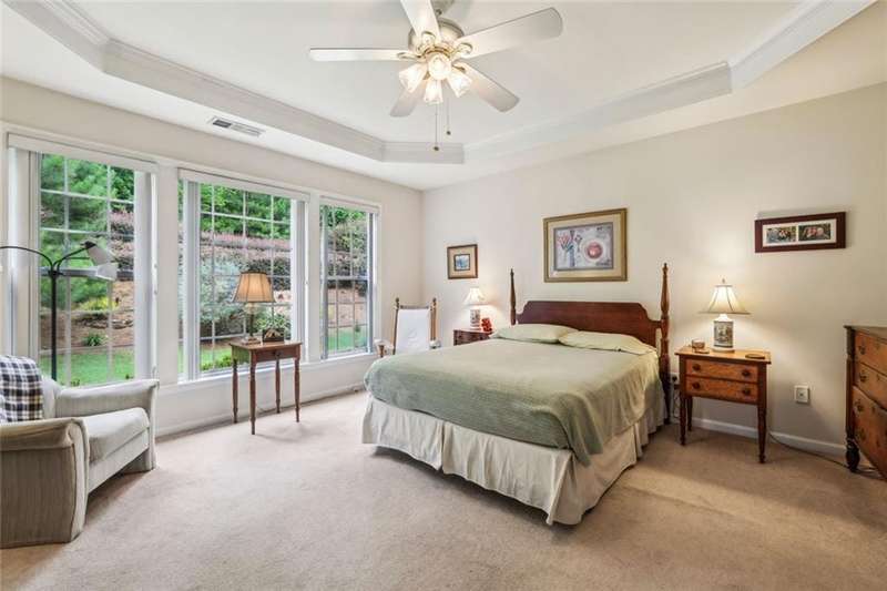NEW PRICE!!! Move-In-Ready. Master-on-Main. Lawncare included with HOA. Freshly painted interior. Private backyard. Charming Craftsman-Style Ranch in sought-after Kingswood at Castleberry. A cozy and inviting 3-bedroom, 2-bath with open-concept living areas. Just minutes to GA400, The Collection, Northside Hospital, and the Cumming City Center and the new Whole Foods Market. This friendly, amenity-rich neighborhood offers a clubhouse, large pool, pickleball courts, dog parks, sidewalks, and an active social committeeideal for anyone looking to settle into a vibrant, connected lifestyle.You will find excellent curb appeal with lush landscaping and a welcoming covered front porch to set the tone for this homes warmth and charm. Inside, a formal foyer opens into a spacious Great Room with a gas fireplace and combined Living/Dining layoutperfect for entertaining. The Kitchen connects seamlessly to the Great Room and features granite countertops, a large island, warm cabinetry, built-in desk, and a sunny breakfast areaone of the largest kitchen layouts in the subdivision. A ramp with handrail from the garage leads directly into the Kitchen and Foyer, enhancing accessibility. The Master-on-Main Suite includes a wide double door entry, a trey ceiling, large windows overlooking the serene backyard, and a generous walk-in closet. The ensuite bath features dual vanities, a separate tub and shower, and an open water closet. (Note: minor updates could improve bathroom entrance, shower and closet accessibility.) Two additional bedroomsideal for guests, home office, or hobbiesshare a full bath and are tucked away for privacy. Both bedrooms have ample closet space. A full-sized Laundry Room adds convenience. Listing agent has quotes for replacing carpet with LVP or updated carpet. The private backyard has a hill that could be planted in multiple colors of Azalea for a show-stopping view. The large covered patio offers a peaceful retreat and can easily be screened or converted to a 3-season room for additional year-round enjoyment. Outstanding entertainment space.