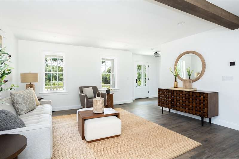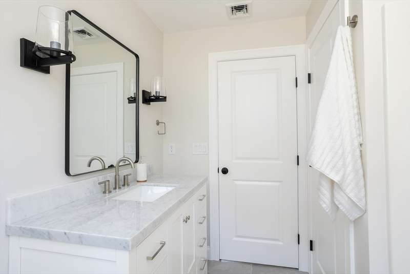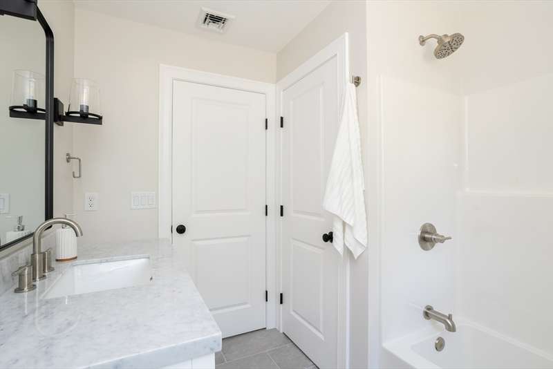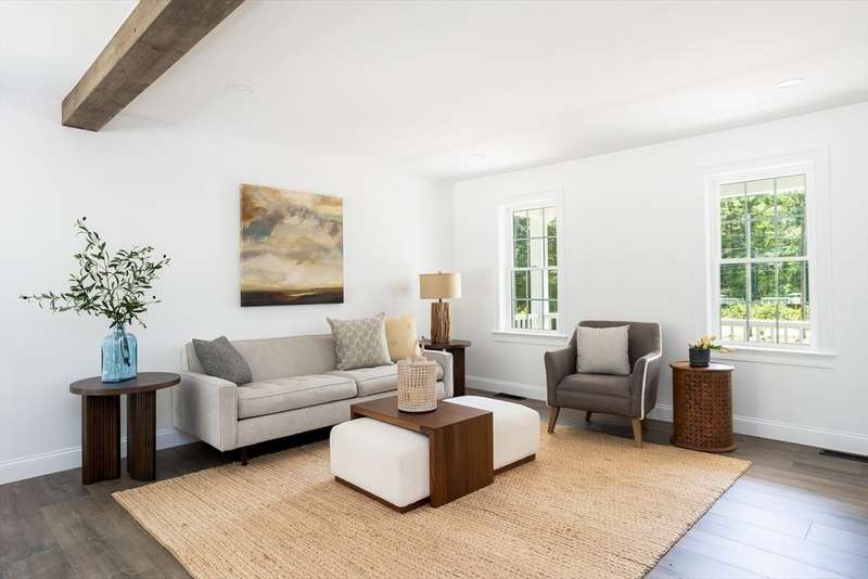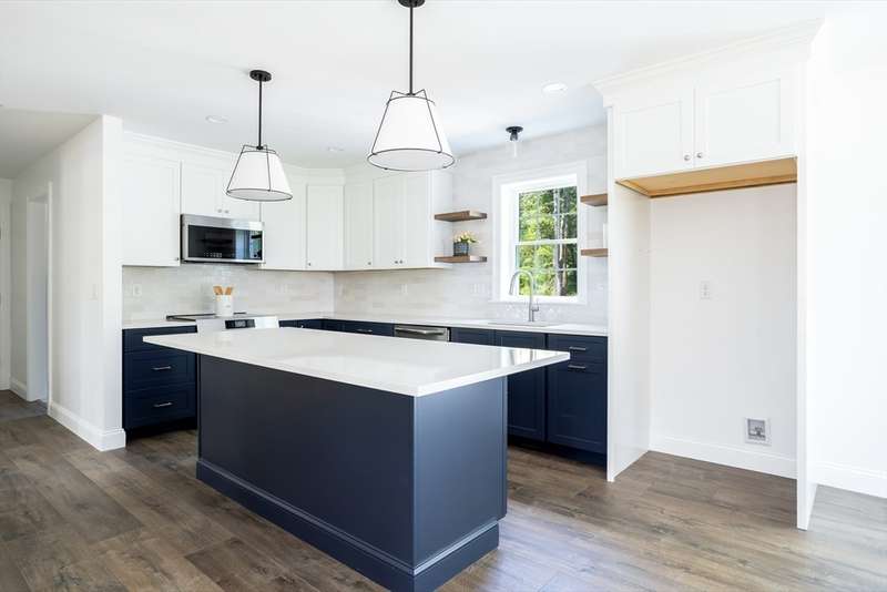 Welcome to this stunning brand-new 3-bedroom, 2.5-bath Colonial, blending classic charm with modern design. The inviting farmer’s porch sets the tone, leading into a bright open-concept layout ideal for today’s lifestyle. The eat-in kitchen features sleek stainless steel appliances, stylish light fixtures, and sliders that open to the back deck for easy indoor-outdoor living. The dining area, accented with nickel gap detailing, can also serve as a versatile home office. Upstairs, the serene primary suite is complemented by two additional bedrooms and a full bath. Beautiful light fixtures are thoughtfully placed throughout the home, adding warmth and character. A two-car garage provides storage and convenience, while the backyard offers space to relax or play. Just 2 miles from Little Harbor Beach and Golf Course, this home delivers the perfect balance of coastal living and everyday ease.
