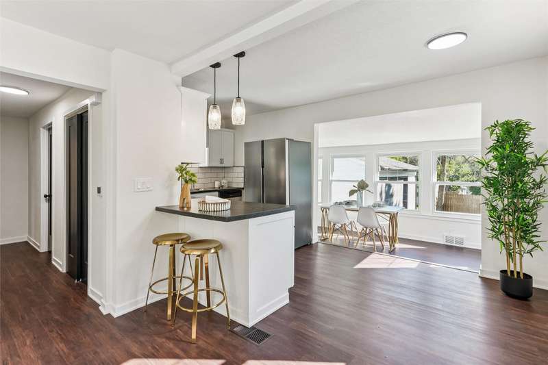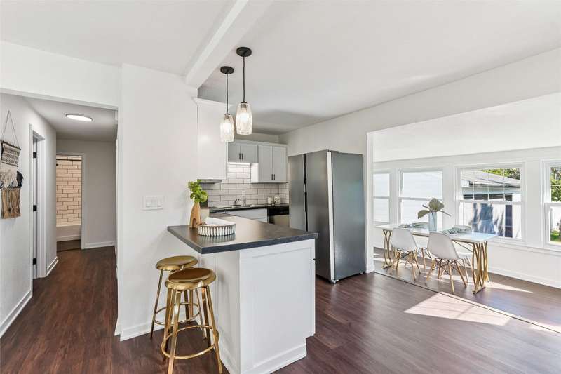 Stop by and check out this updated 3 bedroom ranch style home. This home has been totally renovated and updated. From the front porch you enter into a ceramic tiled foyer and entry area. As you turn to the living room you notice tons of natural light streaming in from the bay window, new flooring, and fresh paint. Walk through the living room to see the open updated kitchen which has all new stainless-steel appliances, new cabinets, new countertops, and attractive hardware. The dining room is lined with windows looking out to the back yard. The three bedrooms are all good sized to work as sleeping areas or in-home office areas. The bathroom is updated with a new sink, ceramic tile floors, and new fixtures. Outside you will find mature trees, attractive landscaping, and a large 2 car garage. Contact an agent to set a time to see this attractive and updated home.