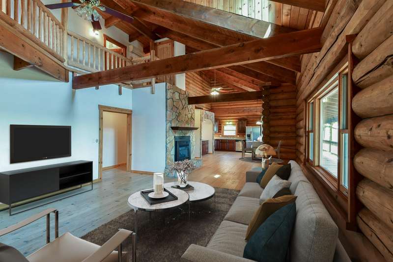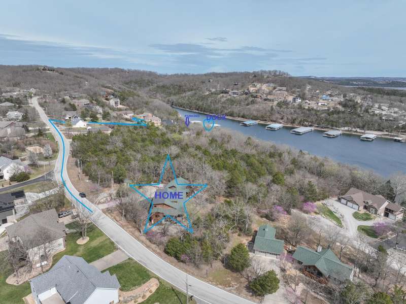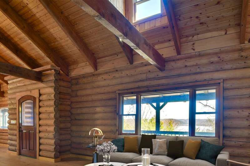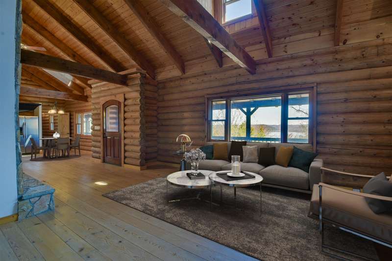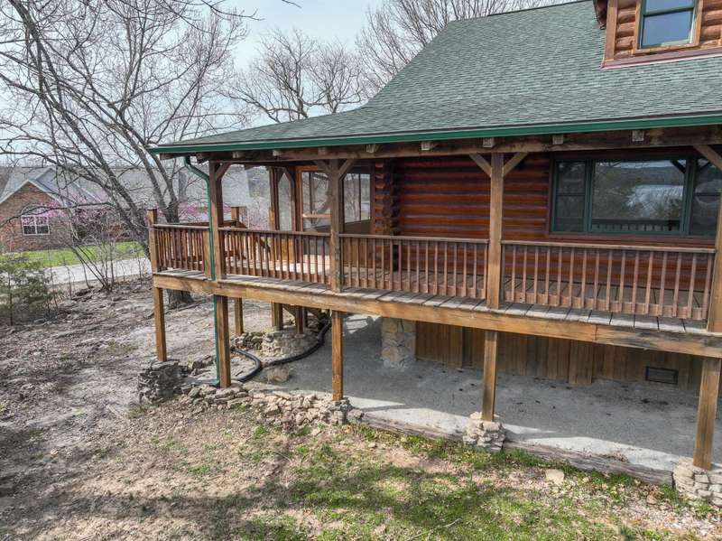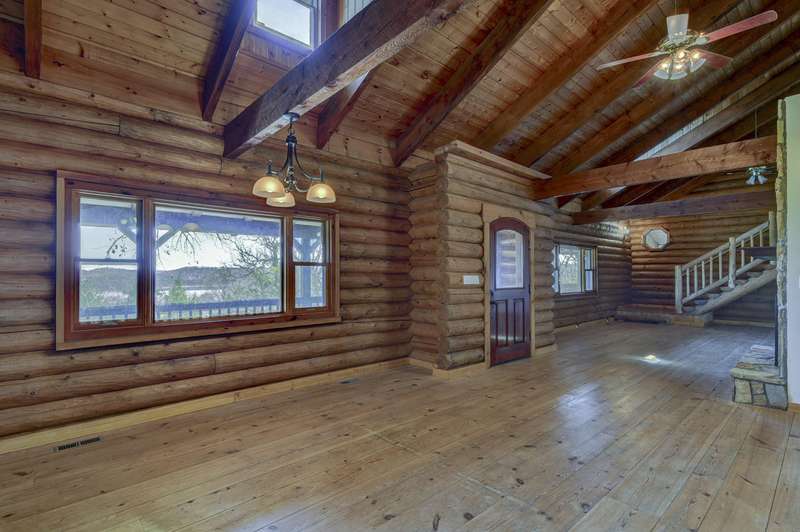 Timeless craftsmanship meets modern comfort in this stunning custom-built log home perched to capture serene views of beautiful Table Rock Lake. Often hard to find, a 10x24 boat slip is available with the home for extra dollars. The authentic log construction, with original reclaimed Amish wood floors and full beams sourced from Pennsylvania, highlight the beauty and rustic elegance of this unique property. The main level fireplace crafted from Arkansas stone brings rustic luxury and warmth throughout, while the Chef's kitchen, lovingly designed with a Tuscany vineyard ambiance, is both functional and inviting. The expansive master suite offers a tranquil retreat with bonus space for an office or sitting area. In addition, the fully screened (even below the flooring) deck adds comfort and privacy to the master suite. Upstairs, the open loft area adds space and character, perfect for a cozy reading nook, guest lounge or game area. Just down the hallway, stunning 170-year-old barn wood detail in the bedroom provides a rare, historical touch. Pella double-pane windows throughout provide energy efficiency and panoramic views. Roof was replaced in March of 2021 and has a ten year warranty! This is more than a home, it's a legacy property, blending historical craftsmanship with modern convenience, nestled in nature and waiting for your touches to make this your personal lake view log home retreat. Speaking of legacy property, don't miss the Indian trail tree as you pull in the drive!! This is definitely a unique opportunity. Schedule your private showing today.