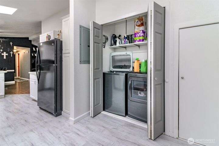Move right into this beautifully updated 3BD/1.75BA Spanaway home! The bright, open floor plan highlights a modern kitchen and a spacious primary suite with private bath. Fresh flooring and thoughtful updates throughout create a welcoming feel the moment you step inside. Enjoy a fully fenced yard—perfect for entertaining or relaxing. Ideally located near JBLM, shopping, parks, and commuter routes, this home is a must-see in Spanaway!