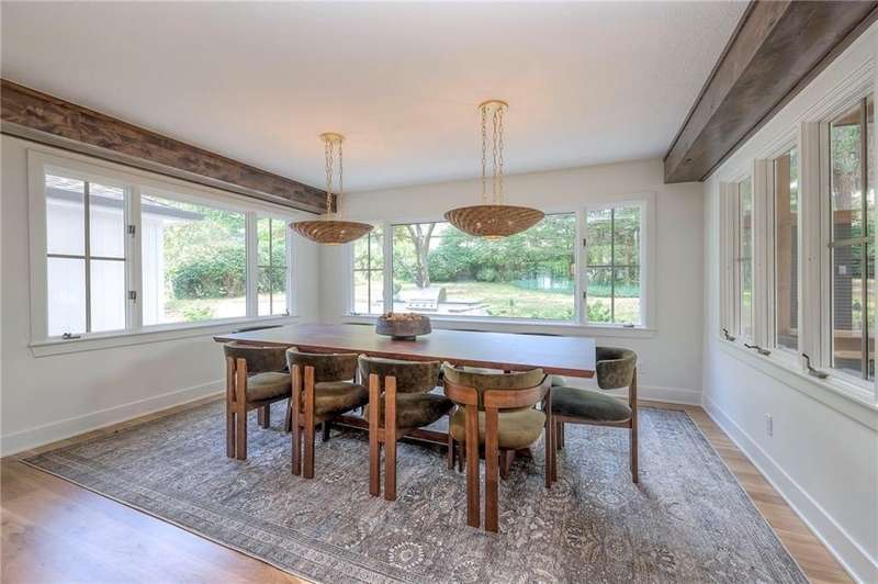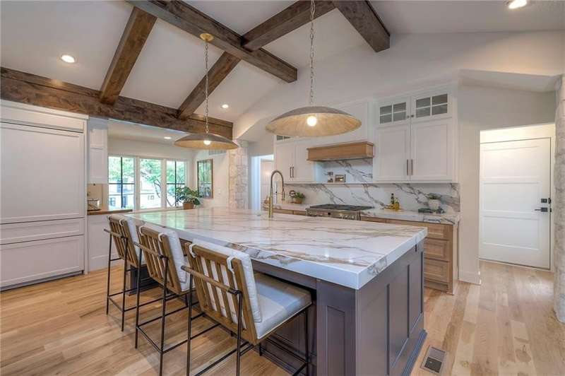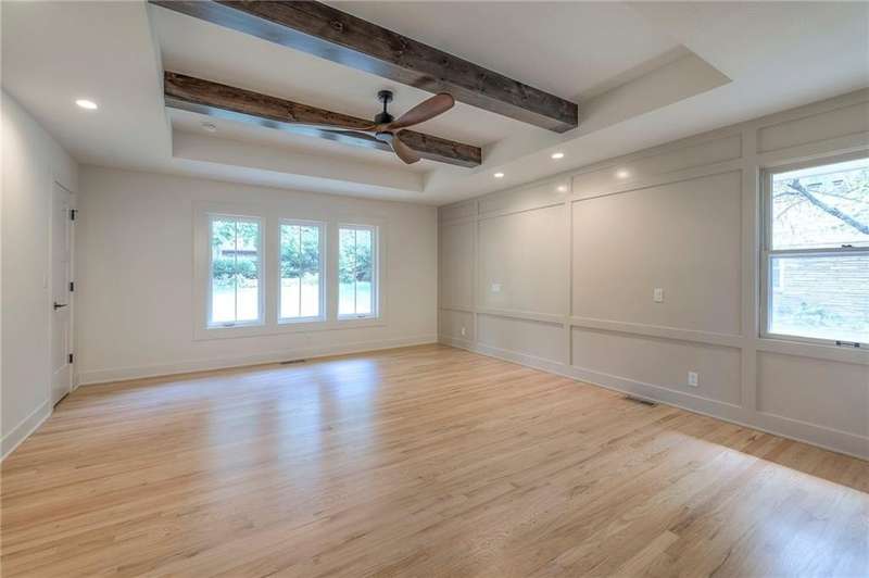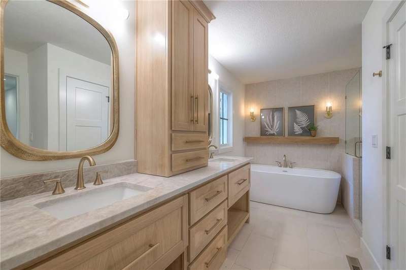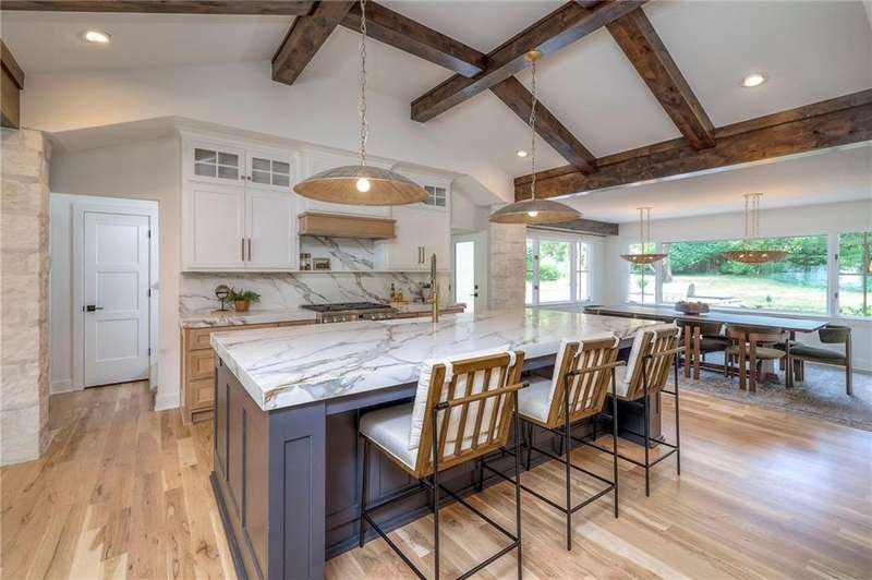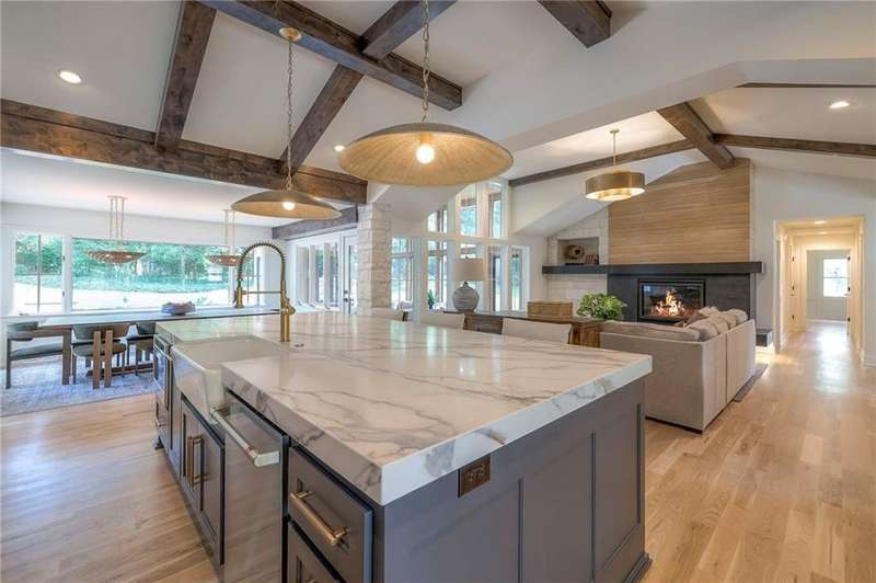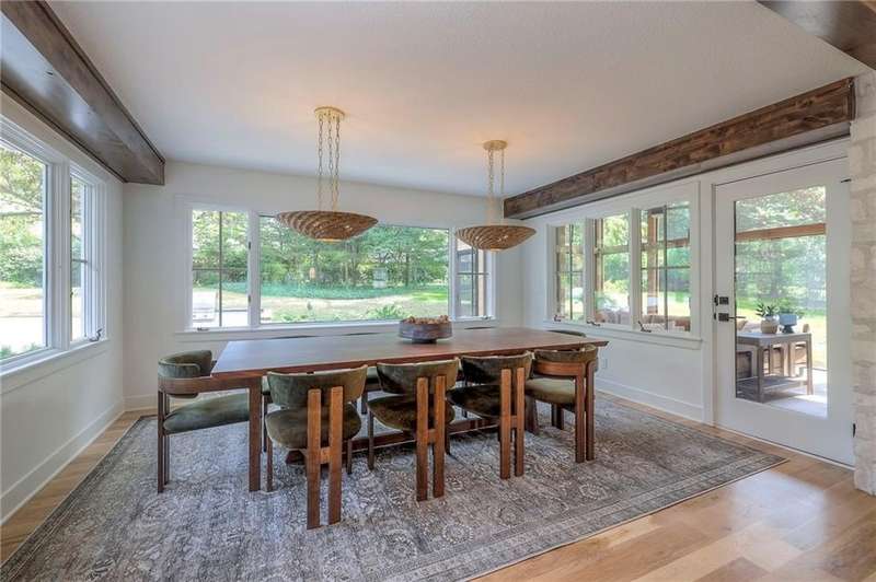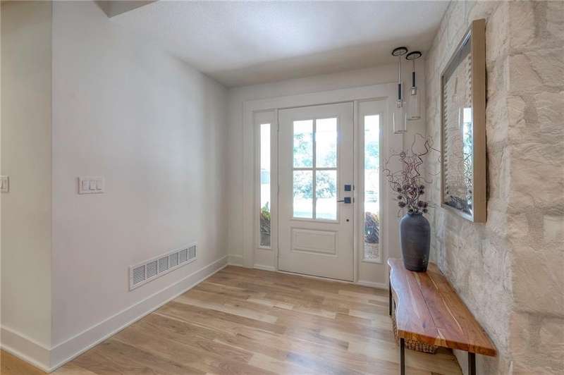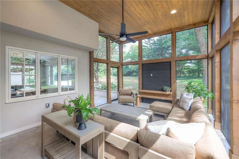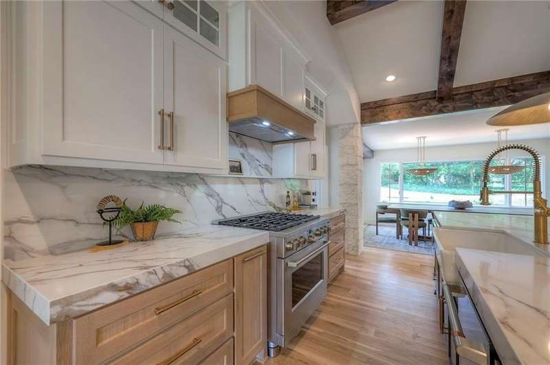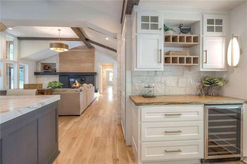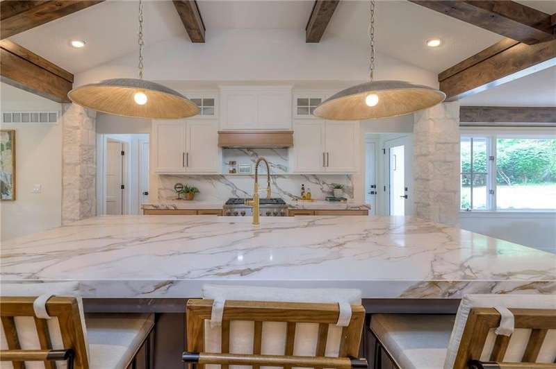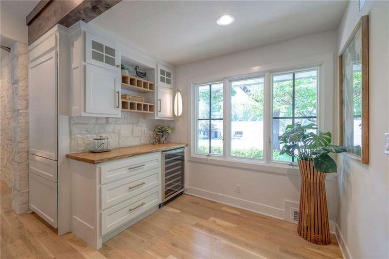 Welcome to this completely remodeled, sprawling ranch in the heart of Old Leawood! This stunning home has been updated from top to bottom with a new roof, new concrete, and a beautifully reimagined interior. An entertainer’s dream, it features gorgeous wood floors, vaulted ceilings, tons of natural light, and an open floor plan that invites gathering and relaxation. The timeless kitchen is sure to delight any chef, boasting quartz countertops, a large central island, high-end appliances including a gas range, and a paneled built-in refrigerator. A spacious walk-in pantry/laundry room offers abundant storage. Enjoy the custom dry bar with a live-edge wood countertop and built-in wine refrigerator, perfect for hosting. The expansive great room features floor-to-ceiling windows and a show-stopping fireplace with granite hearth and mantel—a true centerpiece of the home. The primary suite on the main floor includes two walk-in closets, a luxurious bath with double vanities, a soaking tub, and a walk-in shower. Step outside to your private backyard oasis, complete with a large patio, screened-in porch, and a brand-new outdoor kitchen area with a built-in grill—perfect for al fresco dining and entertaining.