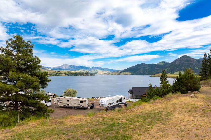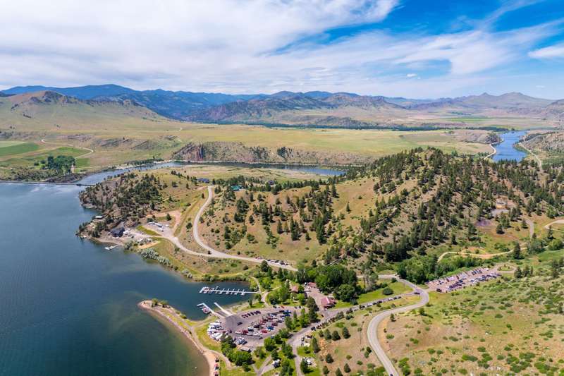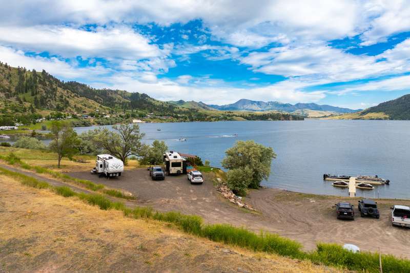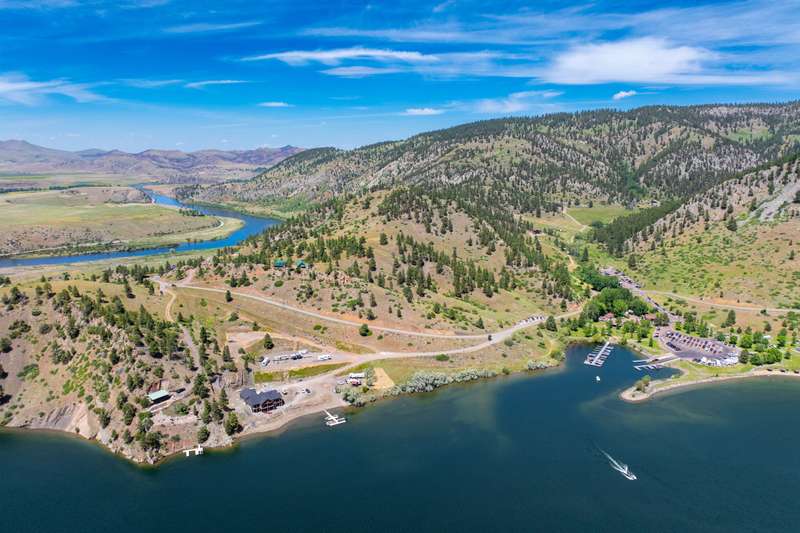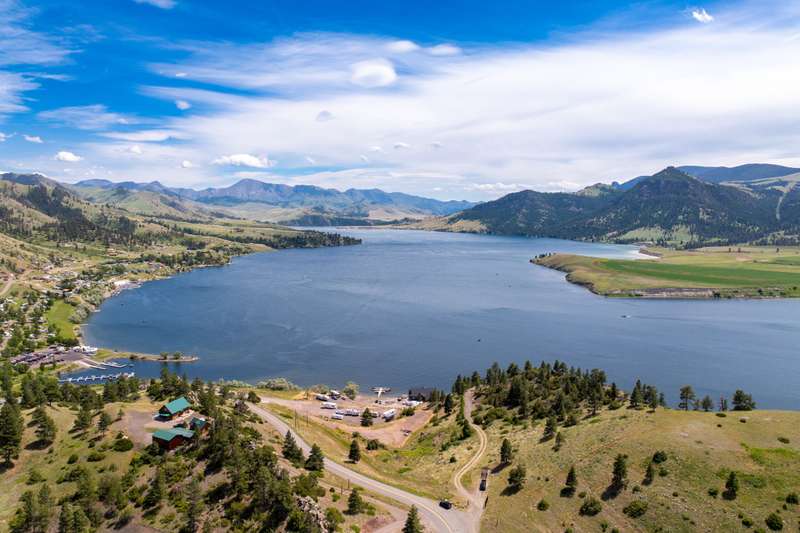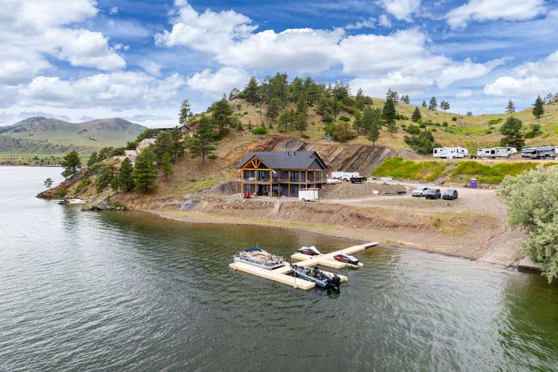 Amazing piece of land at Holter Lake! This rare lakefront property is BUILD READY with over $250,000 of infrastructure completed. Wells completed! Septic systems completed! Electricity to the sites completed! This property features private a boat launch, private beach, and is secured in the Holter Heights development. Come and build your dream home with seller financing options available. Building in photos is an example of what could be built and is not for sale.