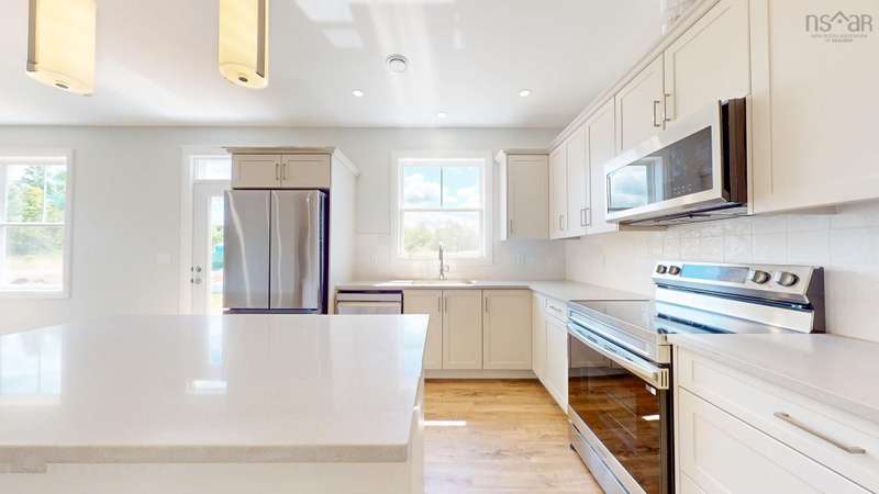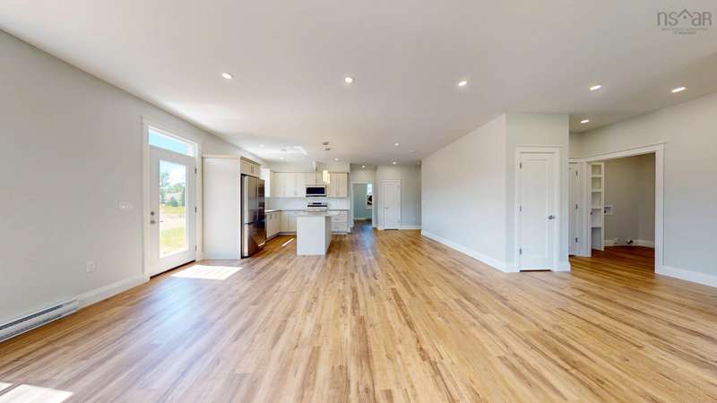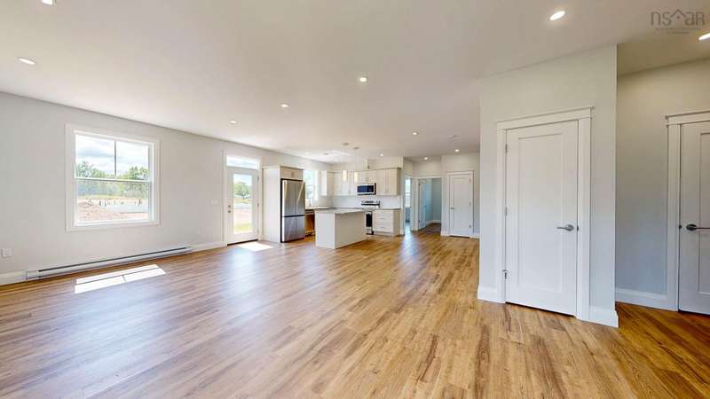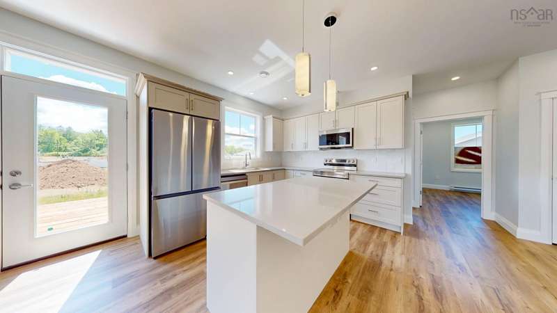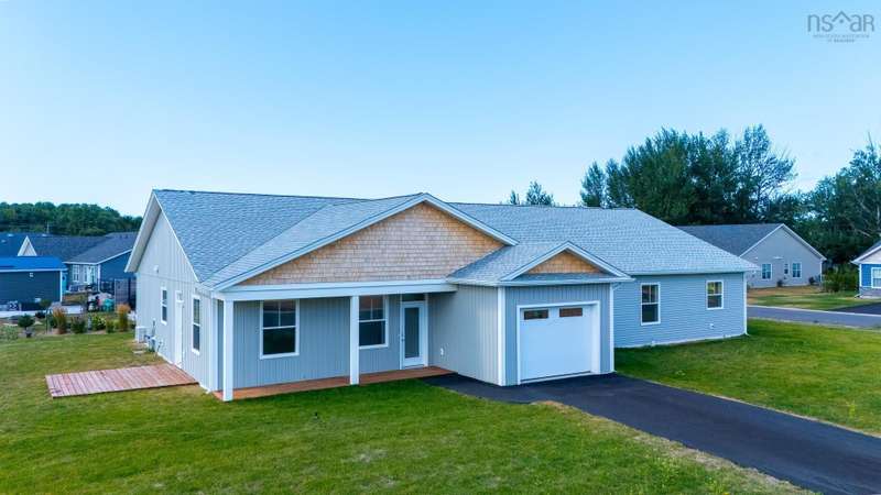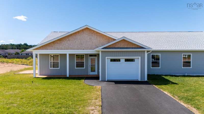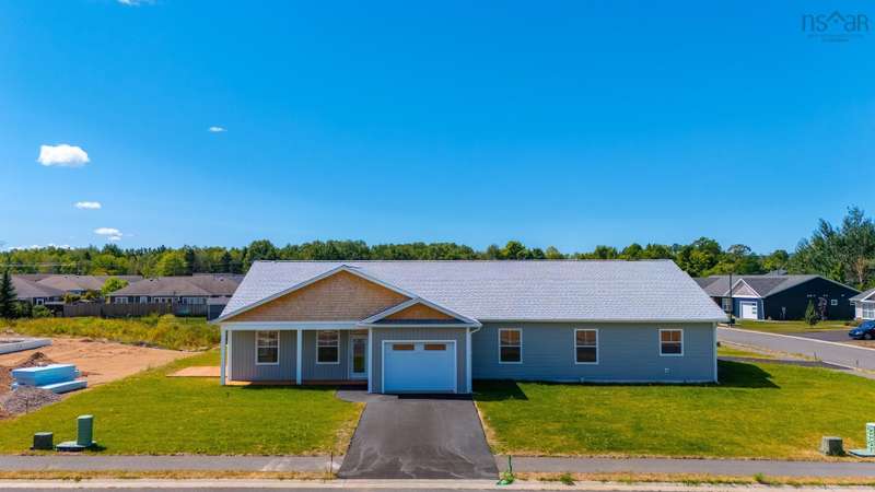 Welcome to 16 Gala Drive, a beautifully designed 3-bedroom, 2-bath semi-detached home in the lively town of Berwick. Perfectly positioned on a corner lot, this one-level home delivers the convenience and cost savings of a semi while offering enhanced privacy with no shared front facade. Built with modern efficiency in mind, the home features a large heat pump for year-round comfort and an airy open-concept design. At the heart of the home, the kitchen seamlessly flows into the dining and living areas, creating a true great room. A center island makes the kitchen ideal for both everyday living and entertaining guests. Upgraded kitchen appliances are included for a move-in-ready experience. The private primary suite includes a stylish walk-through closet with barn door detailing and a full ensuite bath. Two additional bedrooms and a second bathroom provide comfortable accommodations for family, guests, or a home office. Located within walking distance to Berwick's shops, restaurants, and recreation facility.