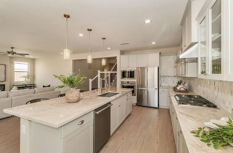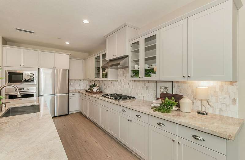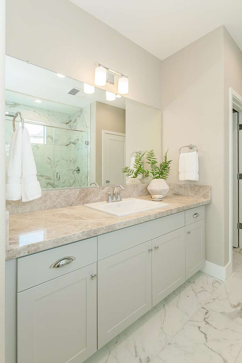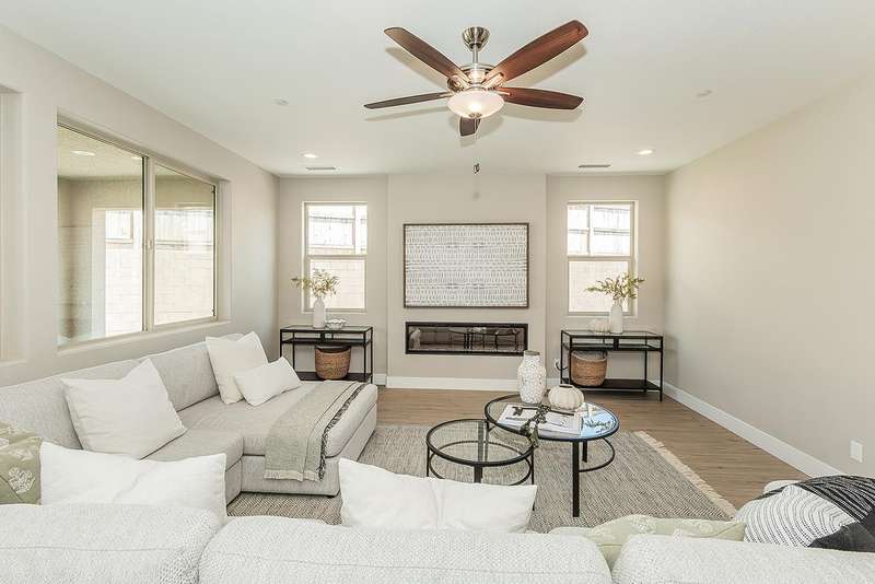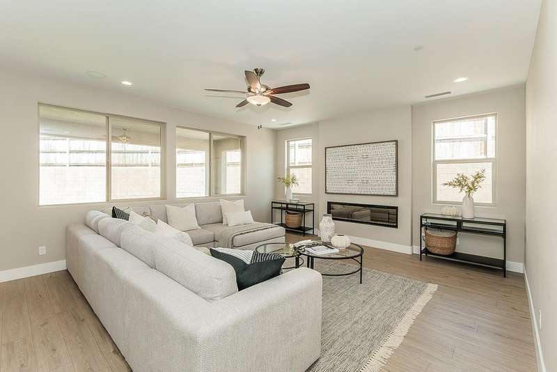 A rare opportunity! The seller had to relocate due to a job, creating your chance to own this barely lived-in home. The home delivers exceptional value compared to what the builder currently offers at the same price, with over $70K in interior upgrades. Plus, thehome sits on a Premium Cul-De-Sac lot near a greenbelt and neighborhood park, offering privacy and a family-friendly setting. As you enter, you'll be greeted by soaring ceilings, a soft, neutral palette, & an open-concept layout that feels spacious. Upgrades, including Taj Mahal Quartzite throughout & Luxury Vinyl Plank flooring on the main level, combine durability w/modern style. The first floor has a private JR suite with/ a frameless walk-in shower & a walk-in closet, ideal for multi-generational living. The home boasts a sun-filled living room w/a cozy gas fireplace. The Chef's kitchen features a spacious layout & a large walk-in pantry w/ built-in shelving- perfect for staying organized. Upstairs, retreat to the luxurious owner's suite featuring a spa-style soaking tub, double vanity, & a spacious walk-in closet. Two additional bedrooms, a full bath, & a conveniently located laundry room complete the upper level. Step outside to discover a generous backyard & side yard w/ stamped concrete for added style & low maintenance. Enjoy the benefits of OWNED SOLAR for energy efficiency & a natural gas line ready for a future spa or built-in BBQ.