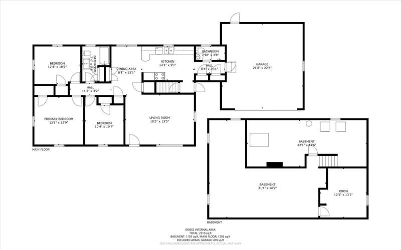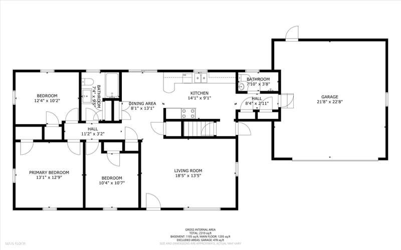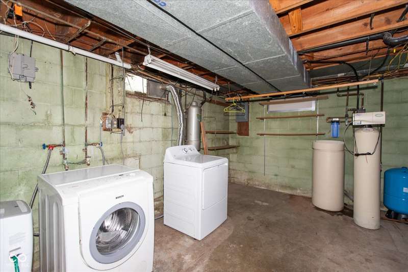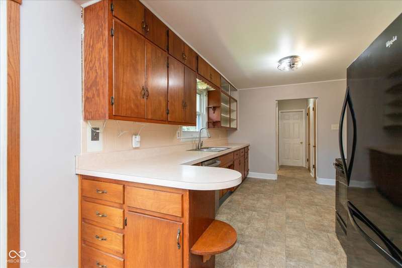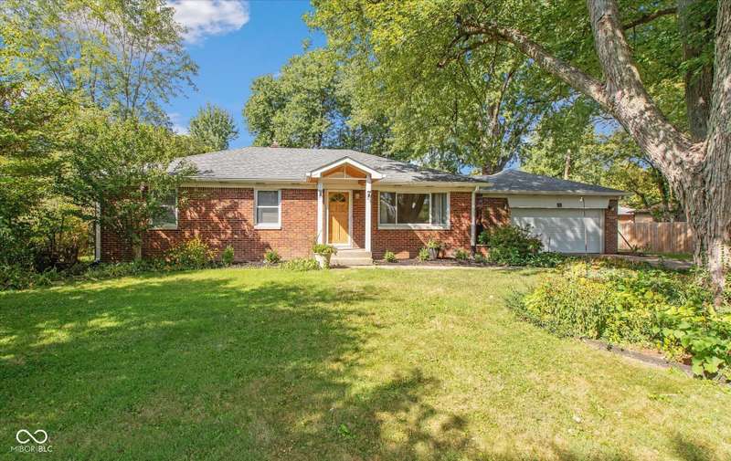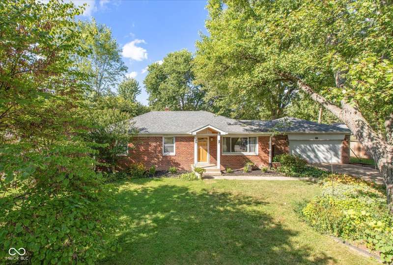 Beautiful ALL Brick ranch with basement on .44 Acre wooded lot! Covered porch entry adds lots of character and leads you into nice size Living room. This home has HARDWOOD floors through-out the main level and new paint. Updates include full hall bath (6 yrs ago), windows are replacement Bee Windows, 2nd bath flooring new & toilet, kitchen has new flooring, sink & faucet & appliances are only 5 yrs old. Garage is huge & Garage door only 2 yrs. old. Basement has new lighting and is big and dry (lots of options)! Roof & gutters are only 2 years old! Backyard is large and has lots of mature trees & a fire pit. Home purchase includes a 1 year home warranty. Home being sold as-is but seller is not aware of any major problems