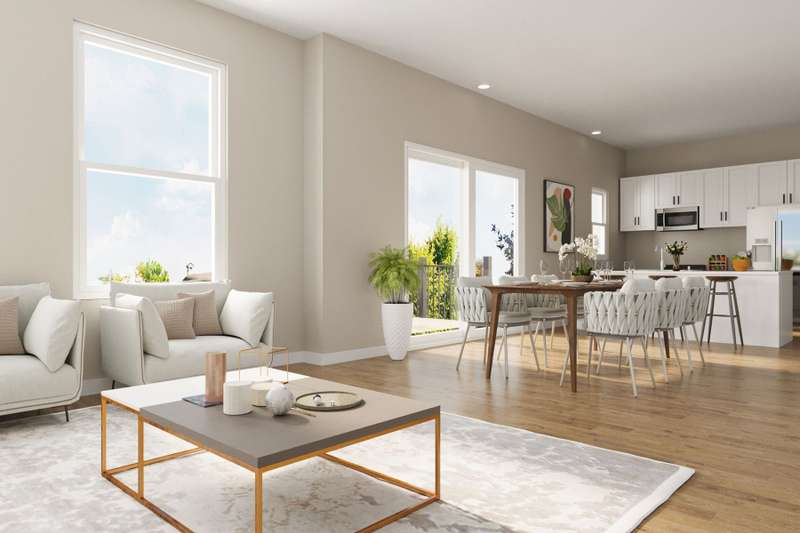 TOP Floor, corner unit with amazing windows! This stunning 2-bed 2-bath condo really highlights single level living! Walking distance to Grays Lake w/access to bike trails, water trails, and is centered into the popular Grays Station community! The home features an open plan with spacious kitchen and generous living space. The primary suite includes a walk in closet & bath with walk in tile shower. This home also has a dedicated laundry room, drop zone, plus an attached garage. TAX abatement! All kitchen appliances and W/D are included. Samples of finish packages available. Photos are renderings of proposed finishes.