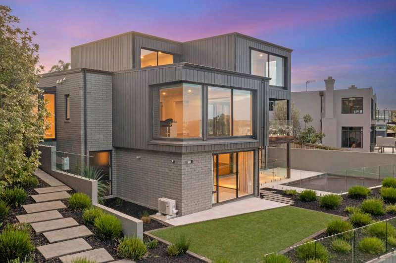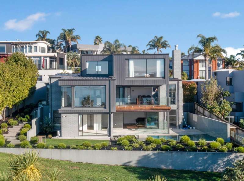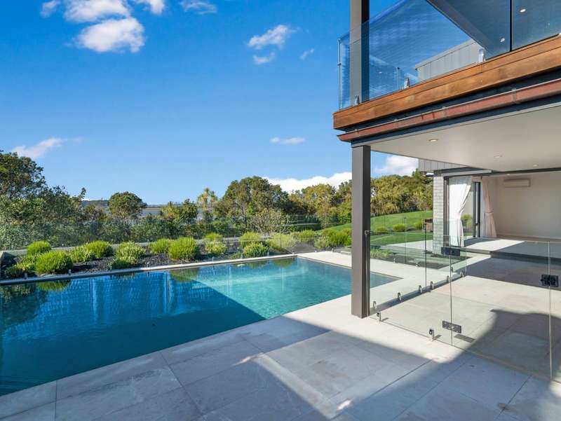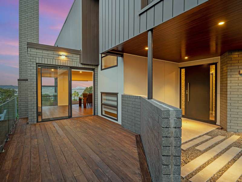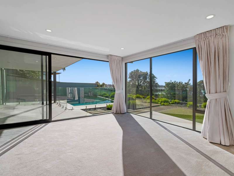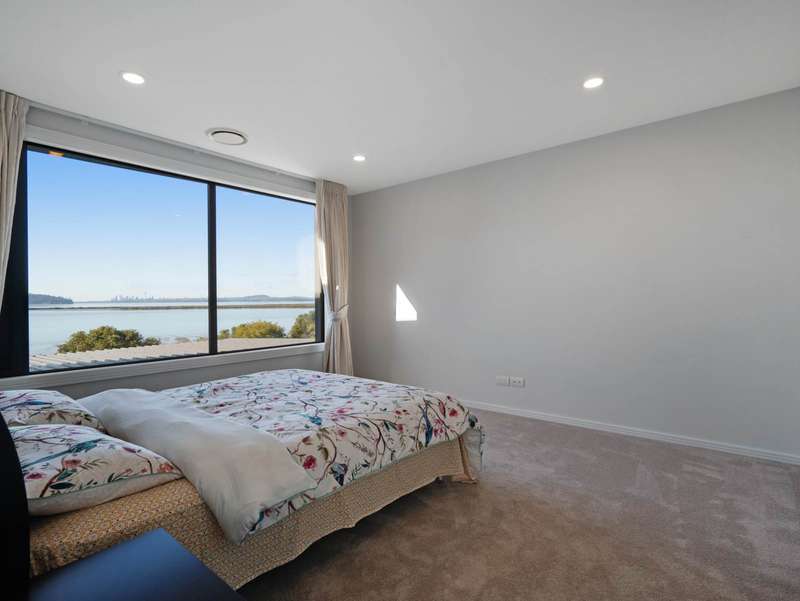 Discover unmatched luxury in this Alan Shanahan-designed seafront mansion, a meticulously kept property that feels as new as the day it was built. This expansive 5-bedroom home, boasting a triple garage and a private heated pool, is situated on a generous plot, offering modern elegance and awe-inspiring views. Constructed from polished concrete blocks and aluminum, this residence exemplifies architectural brilliance and masterful craftsmanship, using only the finest materials. Indoors, enjoy three spacious living areas designed for seamless indoor-outdoor living. The open-plan kitchen and dining area, perfectly integrated with both living spaces, open to a vast alfresco deck—ideal for entertaining while taking in the sweeping sea views that include Auckland's iconic landmarks like the Sky Tower, the city skyline, and the Harbour Bridge. On the upper levels, four expansive bedroom suites each offer a private ensuite, creating a sanctuary of modern luxury. The lower floor features a separate living area with a kitchenette, a guest bedroom, and a separate bathroom - perfect for hosting family, friends, or visitors. Located on a prestigious street among multi-million dollar properties, this residence offers a lifestyle of convenience and exclusivity. Enjoy a short stroll to Westpark Marina, Marina View School, and public transport, with bus service to top private schools and a ferry to the CBD right at your doorstep. Since the owners are primarily overseas, this property has been kept in pristine, like-new condition. This is a rare opportunity to own a truly remarkable home in a prime coastal location. Don't miss out on this unique chance to make this luxury seafront mansion your own.