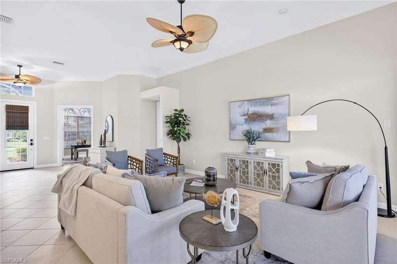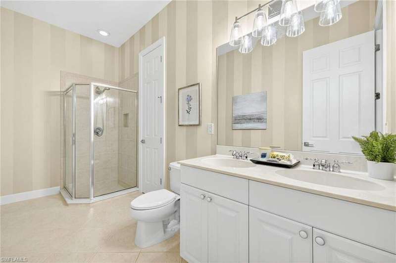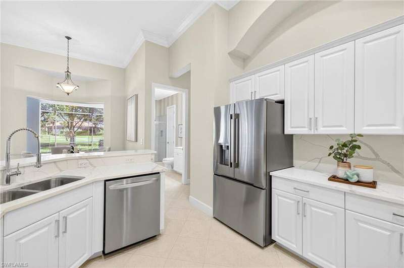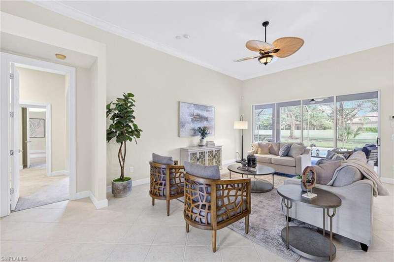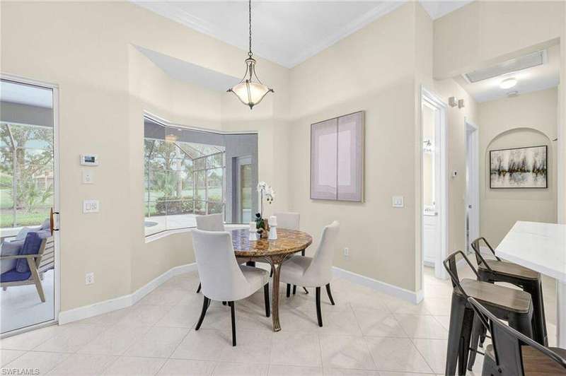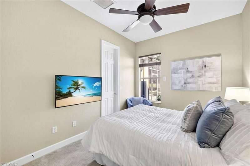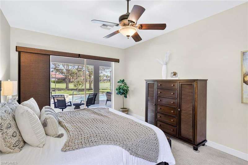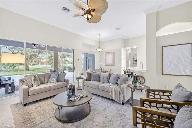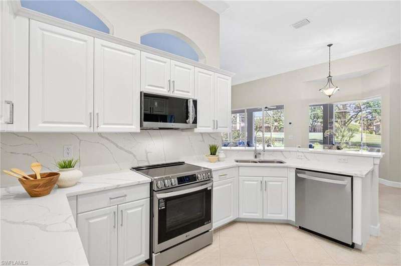 Welcome to your dream home located in the sought-after gated community of Mustang Island at Lely Resort in beautiful Naples! This stunning property boasts picturesque golf course views that can be enjoyed from the expansive screened-in lanai complete with a heated pool and spa, perfect for entertaining or relaxing in style. Inside, you'll find a culinary haven with brand new stainless steel kitchen appliances, complemented by exquisite new quartz countertops and backsplash. The primary bedroom offers plush comfort with fresh new carpet. Recent upgrades include a new tile roof in 2024 and fresh exterior paint. As a Mustang Island resident, indulge in the Players Club and Spa, a 15-acre tropical paradise offering clubhouse and Tiki Bar dining and entertainment, expansive fitness center with trainers and classes, 2 resort style pools, 1 lap pool, 13 tennis courts, 4 pickleball courts and 4 bocce courts. Lely Resort is also home to three golf courses, including one private and two public options. You'll love the convenience of being just a short distance from the vibrant shopping and dining scene of 5th Ave, as well as the pristine beaches of Naples and Marco Island. This home is the perfect blend of luxury, comfort, and location, offering you a lifestyle of unparalleled ease and enjoyment. 1 year Home-Tech Silver Plan Home Warranty included. The staged furniture is available for purchase from the Stager.