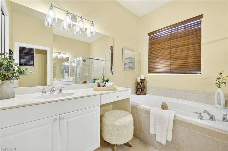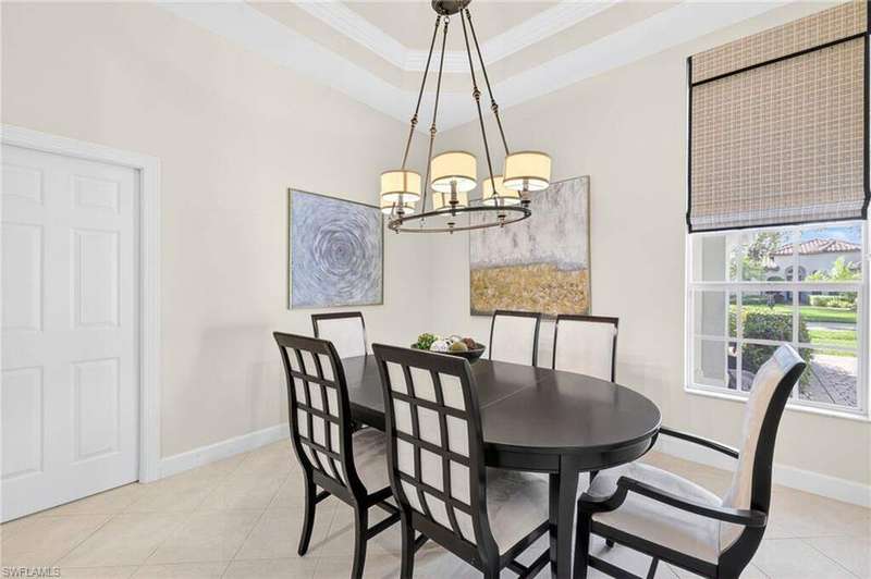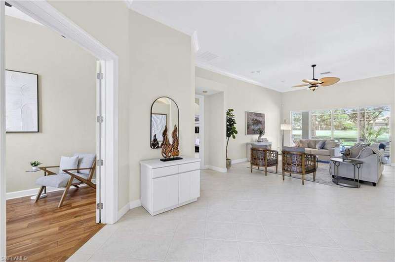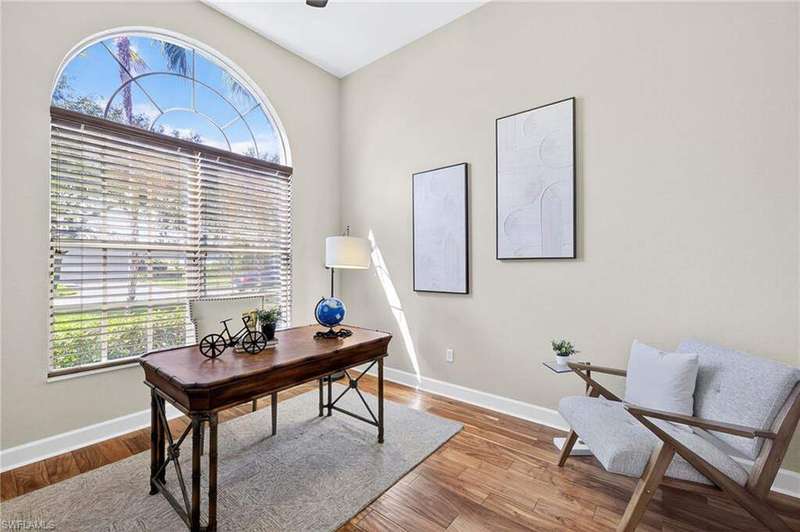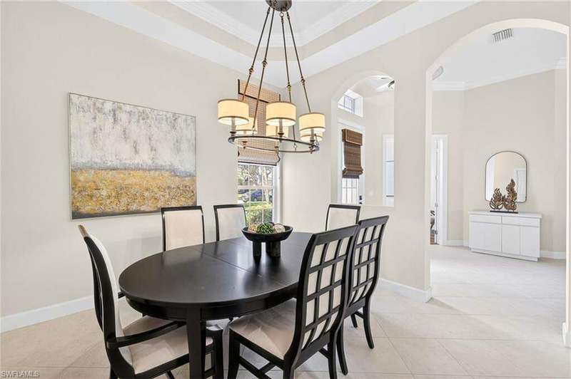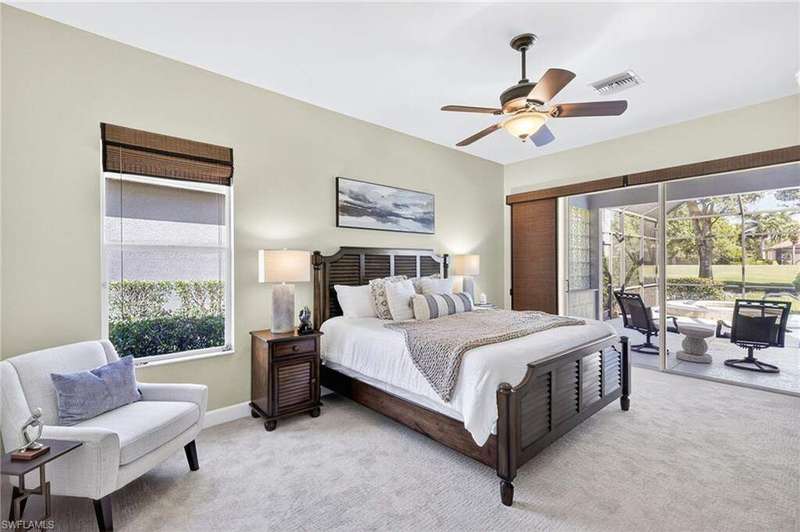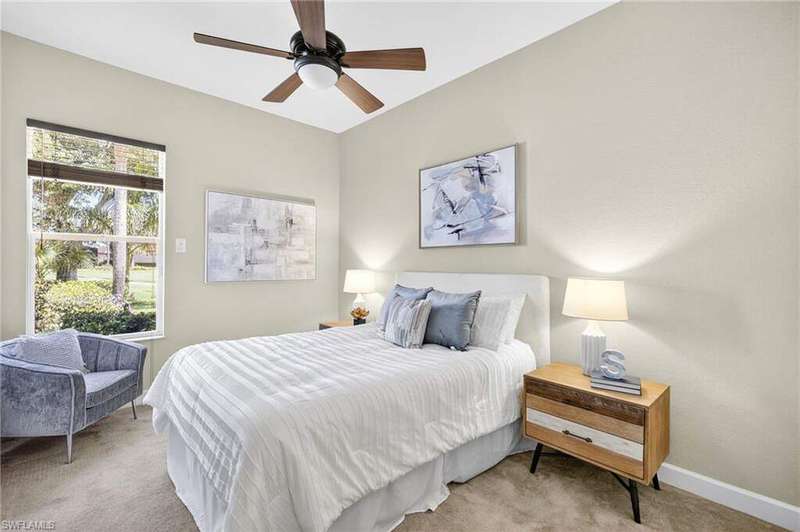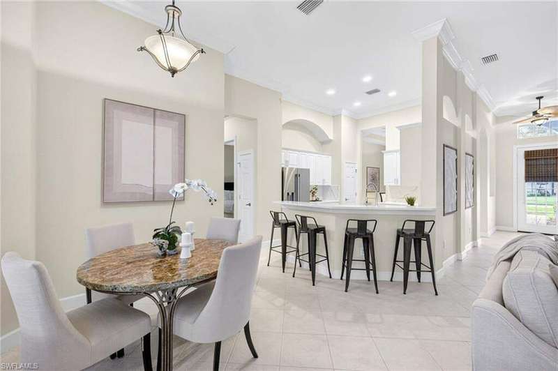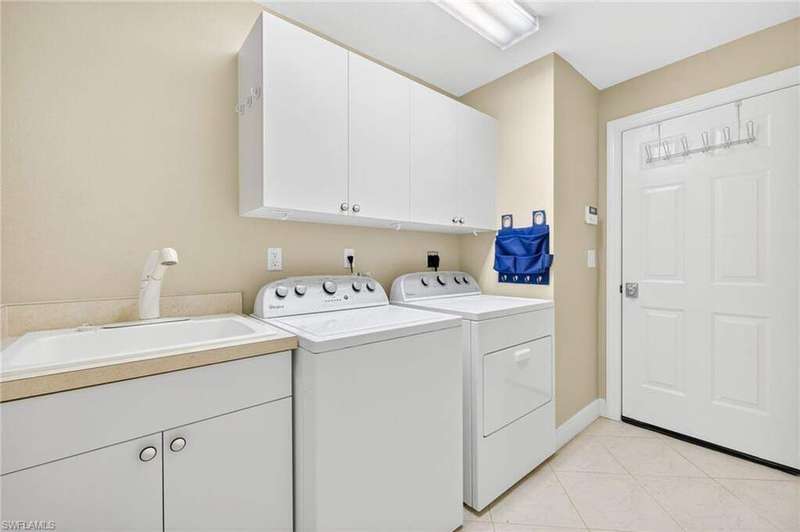 Welcome to your dream home located in the sought-after gated community of Mustang Island at Lely Resort in beautiful Naples! This stunning property boasts picturesque golf course views that can be enjoyed from the expansive screened-in lanai complete with a heated pool and spa, perfect for entertaining or relaxing in style. Inside, you'll find a culinary haven with brand new stainless steel kitchen appliances, complemented by exquisite new quartz countertops and backsplash. The primary bedroom offers plush comfort with fresh new carpet. Recent upgrades include a new tile roof in 2024 and fresh exterior paint. As a Mustang Island resident, indulge in the Players Club and Spa, a 15-acre tropical paradise offering clubhouse and Tiki Bar dining and entertainment, expansive fitness center with trainers and classes, 2 resort style pools, 1 lap pool, 13 tennis courts, 4 pickleball courts and 4 bocce courts. Lely Resort is also home to three golf courses, including one private and two public options. You'll love the convenience of being just a short distance from the vibrant shopping and dining scene of 5th Ave, as well as the pristine beaches of Naples and Marco Island. This home is the perfect blend of luxury, comfort, and location, offering you a lifestyle of unparalleled ease and enjoyment. 1 year Home-Tech Silver Plan Home Warranty included. The staged furniture is available for purchase from the Stager.