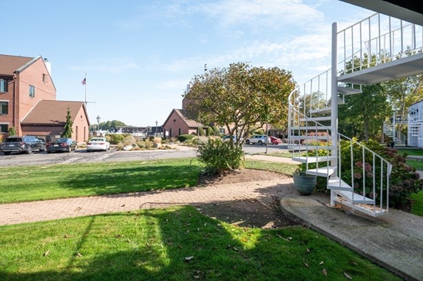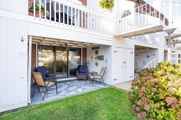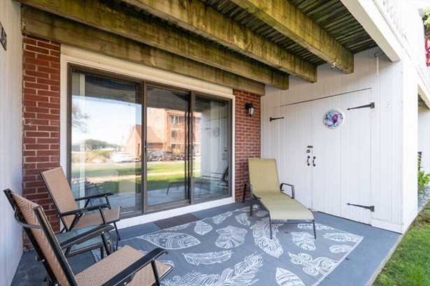 Here's your opportunity to get into River's Edge Condominiums, a waterfront community. This ground level garden style, 2BR/2BA is centrally located. Both the living room slider (with private patio) and main bedroom slider (with private patio) look out onto the Rail Trail Boardwalk and Merrimac River beyond. There is plenty of storage inside this unit with several closets and 3 separate exterior storage areas. Convenient washer/dryer is also inside and included with the sale. Watch boating all day, in season, and/or use the Boardwalk to travel into downtown Newburyport to visit the shops, restaurants and all the charm of a coastal community. The condo is easy one floor living and has been recently refreshed with interior paint and new carpet. Don't miss out!