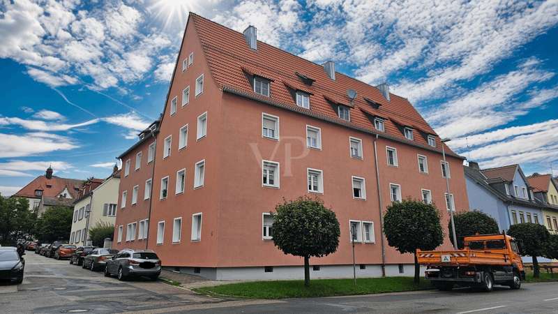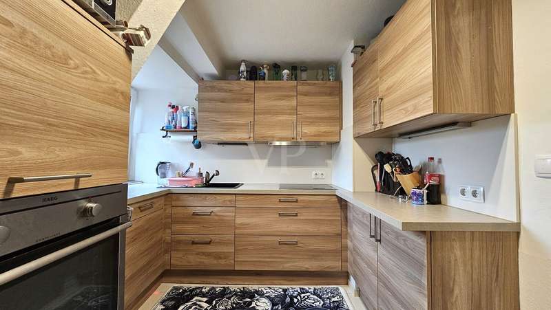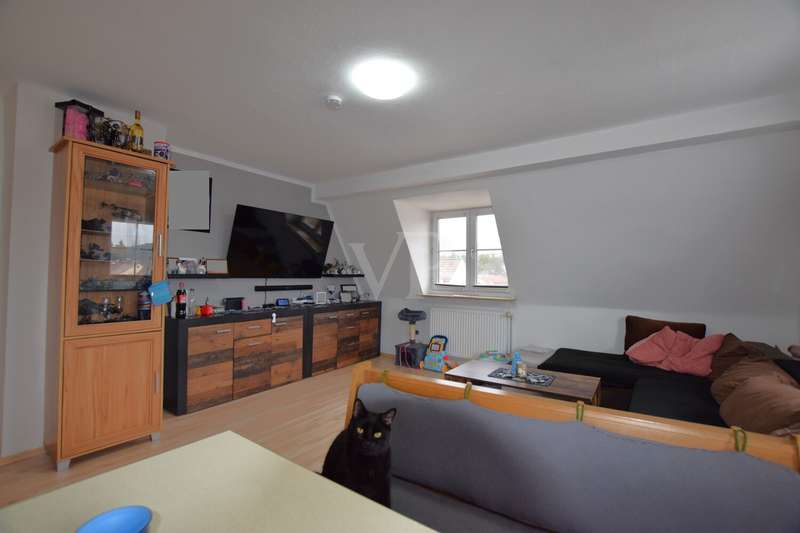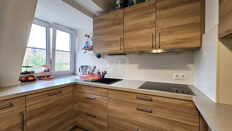 This completely renovated 4-room apartment is located on the top floor of a modernized apartment building with a total of 12 parties. The wide staircase leads to the apartment, which is not only in a well-kept condition, but also has a well thought-out room layout. From the hallway, you reach the respective rooms. To the left of the hallway are the two bright, south-facing children's rooms. Straight ahead along the hallway is the master bedroom and then the heart of the apartment, the large living room, which is flooded with light on two sides. It offers enough space to create a cozy living area and to accommodate a family dining area. The existing, custom-made and well-maintained fitted kitchen is already included in the purchase price and equipped with all the necessary electrical appliances. The fronts and worktop were selected in a beautiful real wood look. The oven at working height offers additional convenience. The small pantry in the kitchen offers space for storing everyday items. The interior bathroom is equipped with a corner bathtub with comfortable seating. The tiles are modern in white on the walls and anthracite. The washbasin element with vanity unit, the mirror cabinet and the other bathroom furniture cabinets provide comfort and storage space. There is also a washing machine connection. The apartment is heated by its own gas central heating system, and residents bill the suppliers directly. The floors in the hallway and rooms are laid with laminate flooring in a light maple wood look. The apartment has its own cellar room and a bicycle parking space. The apartment is currently well let and is ideal for investors. We will be happy to provide you with information about the monthly rental income in a personal meeting. We invite you to view this attractive apartment in person. Please contact us for further information or to arrange a viewing appointment. We look forward to your inquiry.