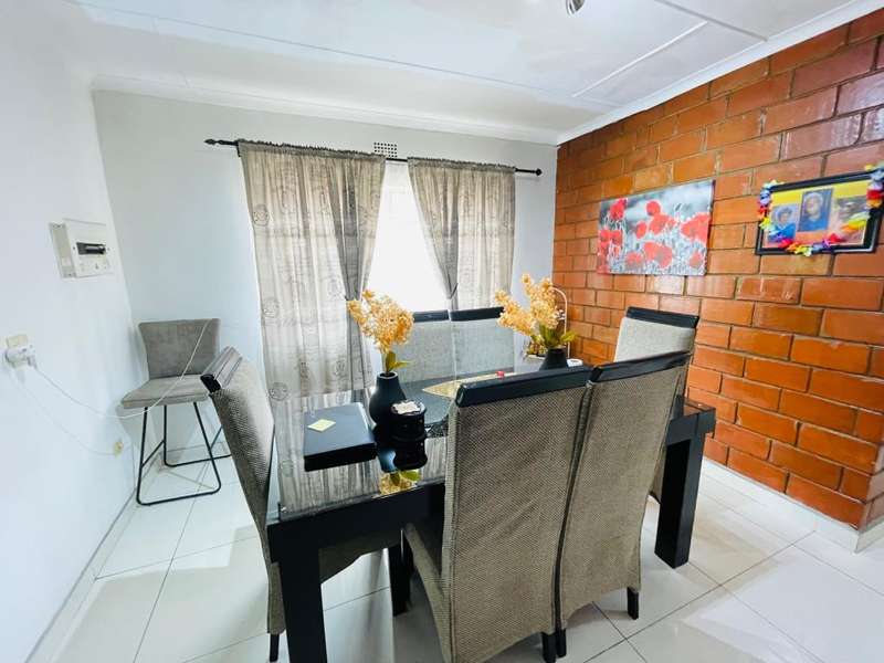 This stunning 3-bedroom apartment boasts high-end finishes throughout, making it a truly special place to call home. The spacious lounge area is designed for modern living, with an elegant glass staircase adding a touch of sophistication. Ceiling fans are installed throughout the property, ensuring comfort in every room. The fully fitted kitchen is sleek and functional, opening up to a welcoming dining area, ideal for entertaining. The apartment features three well-sized bedrooms, each with built-in wardrobes. The main bedroom comes with its own ensuite for added convenience and privacy. The third bedroom, located on the top floor, offers a serene retreat away from the rest of the home. The bathroom is beautifully finished with premium materials, adding a touch of luxury. The apartment is in a well-maintained, secure gated estate, offering peace of mind with 24/7 security. Residents can also enjoy the communal pool within the estate, perfect for relaxation and leisure. This home is both stylish and practical, offering a safe, neat, and comfortable living space for those who appreciate finer finishes and a quality lifestyle.