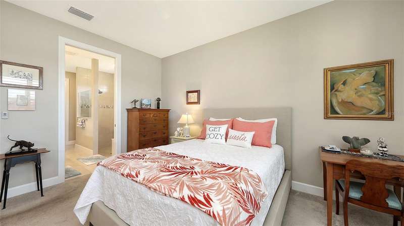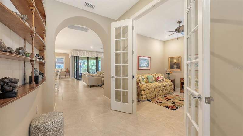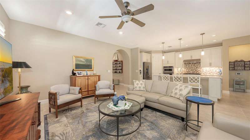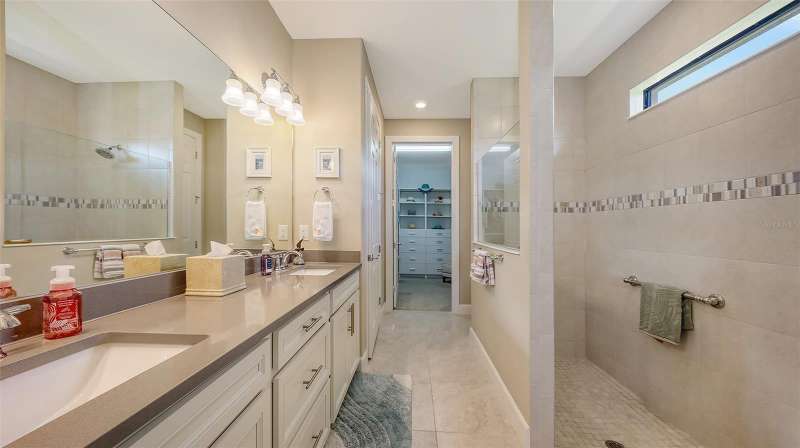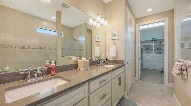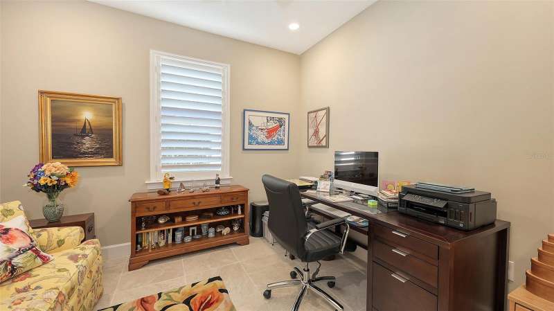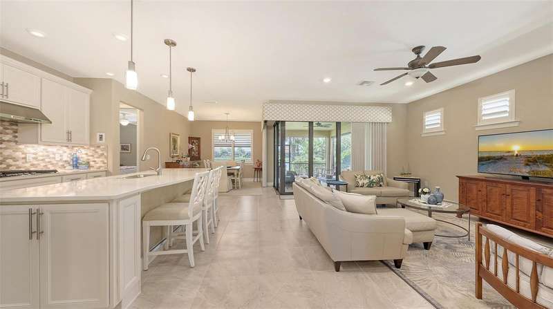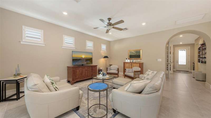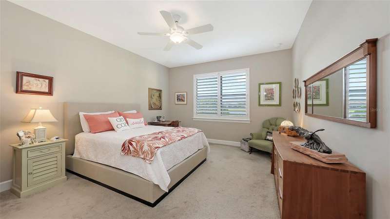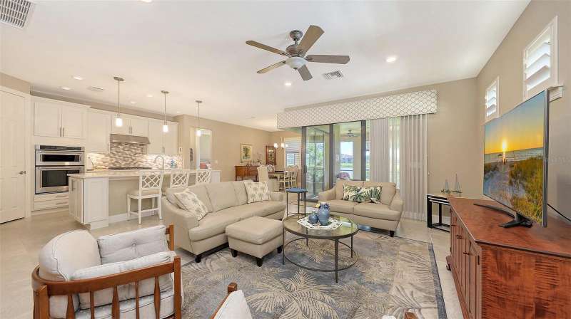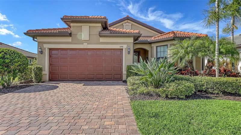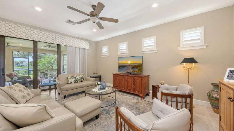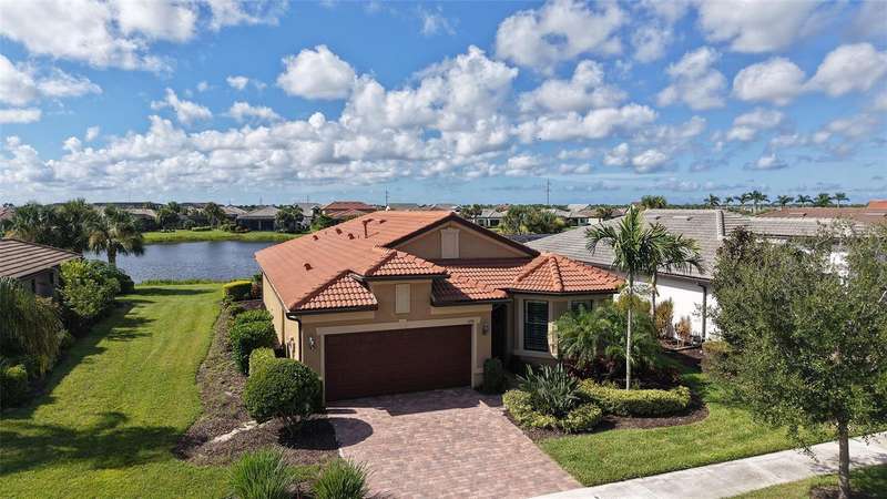 Under contract-accepting backup offers. ELEGANTLY PRESENTED AND IMMPECABLY MAINTAINED DESCRIBES THIS 2 BEDROOM, 2 BATH SUMMERWOOD MODEL. COVERED PAVERED FRONT PORCH LEADS TO LEADED GLASS DOOR ENTRY. SEPARATE DEN/STUDY WITH FRENCH DOORS. THE GREAT ROOM IS OPEN AND SPACIOUS. ALL WINDOWS HAVE WHITE WOOD PLANTATION SHUTTERS. THE CHEF’S KITCHEN INCLUDES A 5-BURNER GAS RANGE, UPGRADED WHITE CABINETRY WITH STAINLESS HARDWARE, WHITE QUARTZ COUNTERS, ALL KITCHEN AID STAINLESS APPLIANCES, DOUBLE STAINLESS SINK, DECORATIVE TILE BACKSPLASH, A LARGE BUILT IN PANTRY, PENDANT LIGHTING WHICH ACCENTS THE LARGE ISLAND WITH EXTRA SEATING, AND PORCELIAN TILE FLOORING. SPACIOUS DINING AREA. THE SECOND BEDROOM HAS BUILT IN CLOSET, ADJACENT TO FULL BATH INCLUDING TUB, TILE TO CEILING, AND GLASS DOOR ENCLOSURE, WHITE QUARTZ VANITY WITH WHITE CABINET. THE WONDERFUL MASTER SUITE HAS HUGE WALK IN CLOSET WITH CUSTOM BUILT INS. THE EXTENDED TILE TO CEILING SHOWER INCLUDES GLASS ENCLOSURE, DOUBLE SINKS, WHITE CABINETS, QUARTZ COUNTERS AND STAINLESS HARDWARE. THE EXTENDED PAVERED LANAI WILL ALLOW YOU TO ENJOY TREASURED MOMENTS WHILE RELAXING AND ENTERTAINING. THE LONG LAKE VIEWS ARE BEAUTIFUL, SERENE, AND SURROUNDED BY MATURE LANDSCAPING. REST YOUR MIND AT EASE KNOWING THAT ALL WINDOWS AND DOORS ARE HURRICANE IMPACT. THE 2-CAR GARAGE HAS EXTENDED AREA WITH WORK BENCH AND AMPLE STORAGE. THE FLOOR HAS EPOXY FINISH. COME ENJOY THIS PREMIER LIFESTYLE. THE COMMUNITY AMENITES INCLUDE GREAT CLUBHOUSE WITH ACTIVITY DIRECTOR, TENNIS, PICKLEBALL, RESORT POOL, DOG PARK, PLAYGROUND, AND MUCH MORE. A PRIME LOCATION HERE IN PALMER RANCH, CLOSE TO SHOPPING, FINE DINING, WORLD FAMOUS BEACHES, THE LEGACY TRAIL, AND MINUTES DOWNTOWN. 24 HOUR GATE WITH SECURE ACCESS.