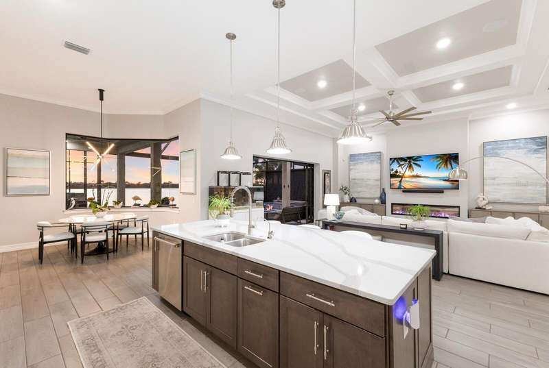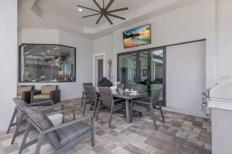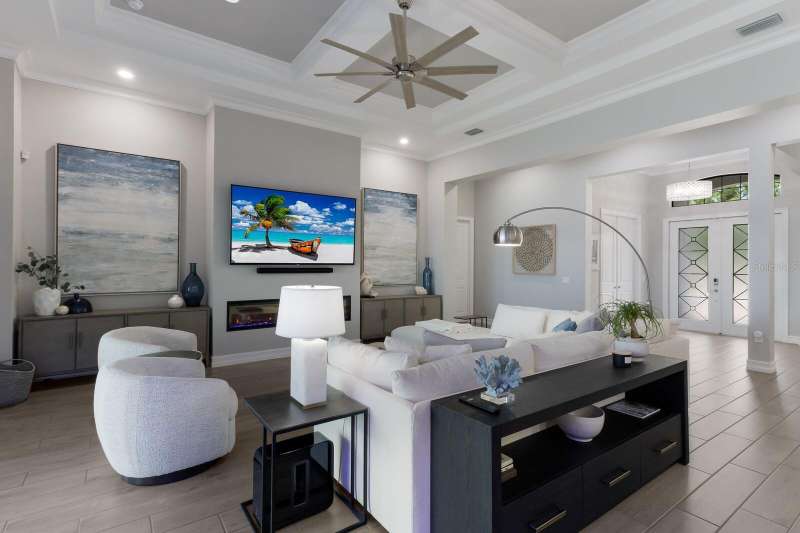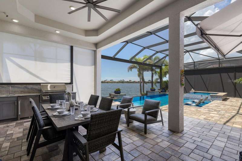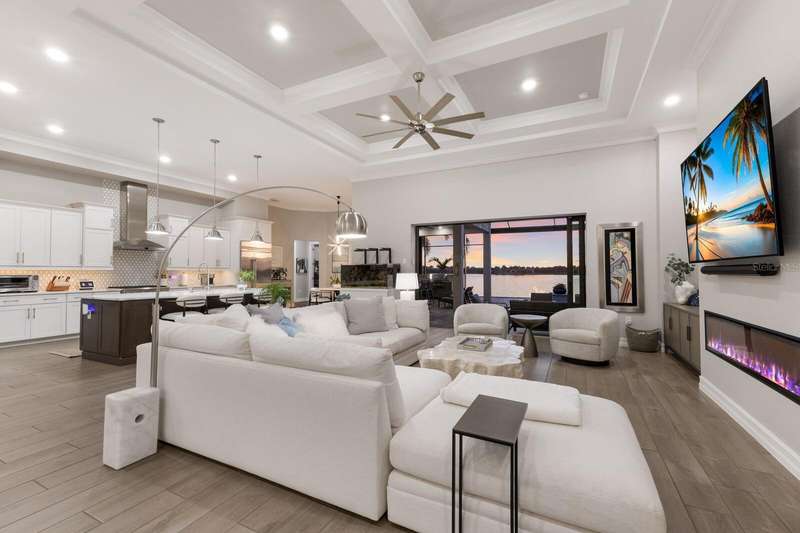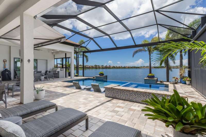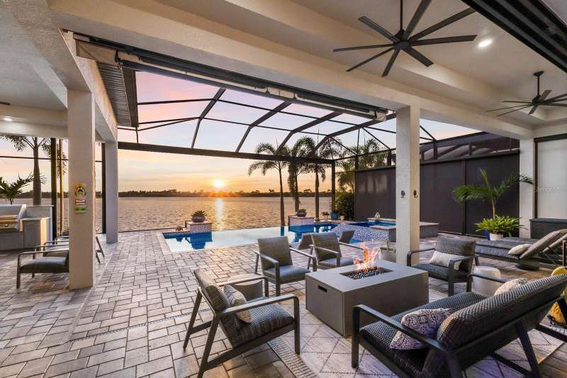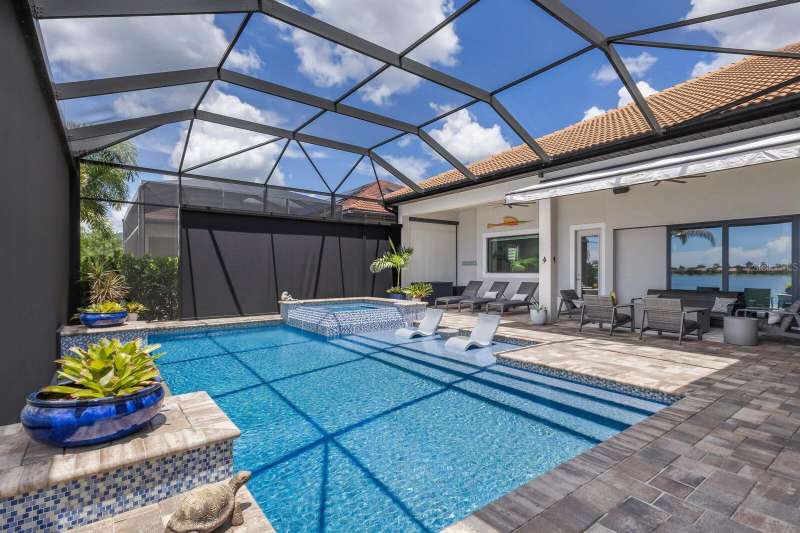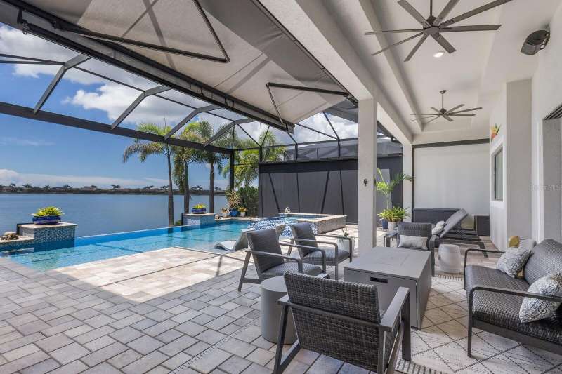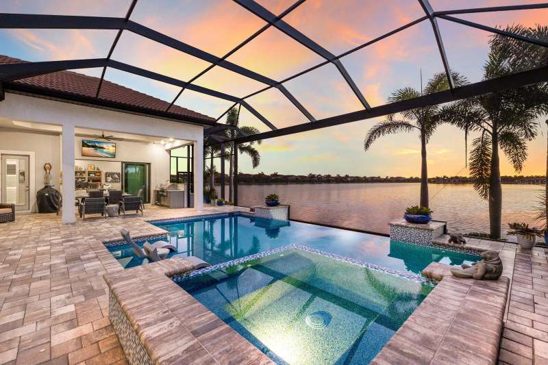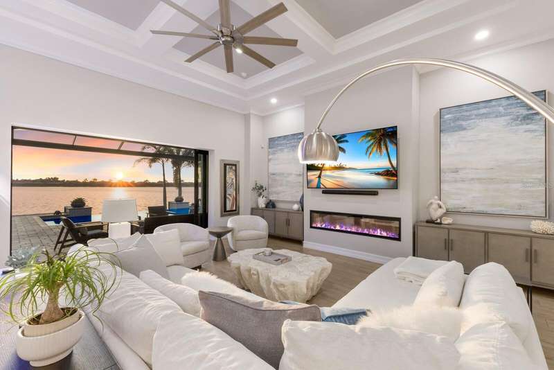Under contract-accepting backup offers. Is it the floor plan, the lot, the outdoor space, the view—or the million-dollar sunsets? Truly, it’s all of them. This Villa Serena by Emerald Homes offers nearly 3,700 sq. ft. of living space and 80 feet of lakefront in the resort-style community of Toscana Isles. Inside, you’ll find 3 bedrooms, 3 full baths, an office, bonus room, oversized 3-car garage, and elegant finishes throughout. The chef’s kitchen showcases Monogram appliances, a large island, dinette, and walk-in pantry, while the primary suite features enviable closets, water views, and a spa-like ensuite. Thoughtful upgrades include plantation shutters, custom lighting, outdoor kitchen, motorized awning and screens, sound and security systems, custom closets, epoxy garage floor, mini-split AC, and a stunning fireplace wall. Outdoors, the lanai is a private retreat for grilling, swimming, entertaining, or savoring sunsets that rival the beach. Built strong, the home has weathered storms with ease. Located on scenic Lake Awesome, you’ll enjoy quick access to Sarasota Memorial’s new hospital, Nokomis Beach, Legacy Trail, downtown Sarasota, UTC, and SRQ. Toscana Isles offers world-class amenities: tennis, pickleball, bocce, fitness, resort pool, clubhouse, game room, fire pit, and more. Come see this lakefront oasis—you’ll be glad you did. Call today for a private showing.